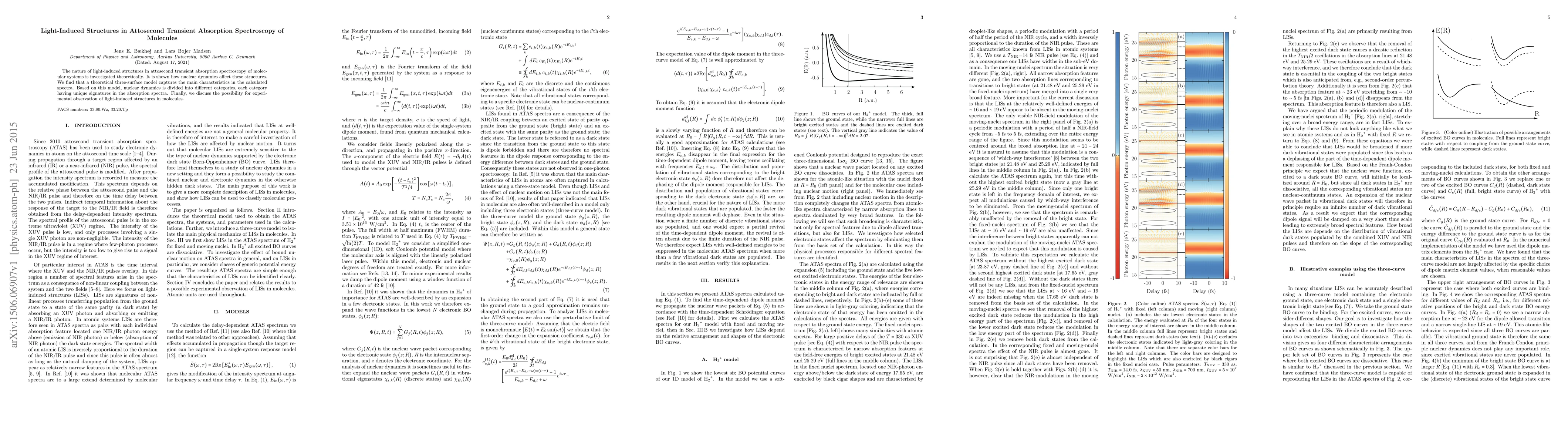 The nature of light-induced structures in attosecond transient absorption spectroscopy of molecular systems is investigated theoretically. It is shown how nuclear dynamics affect these structures. We find that a theoretical three-surface model captures the main characteristics in the calculated spectra. Based on this model, nuclear dynamics is divided into different categories, each category having unique signatures in the absorption spectra. Finally, we discuss the possibility for experimental observation of light-induced structures in molecules.