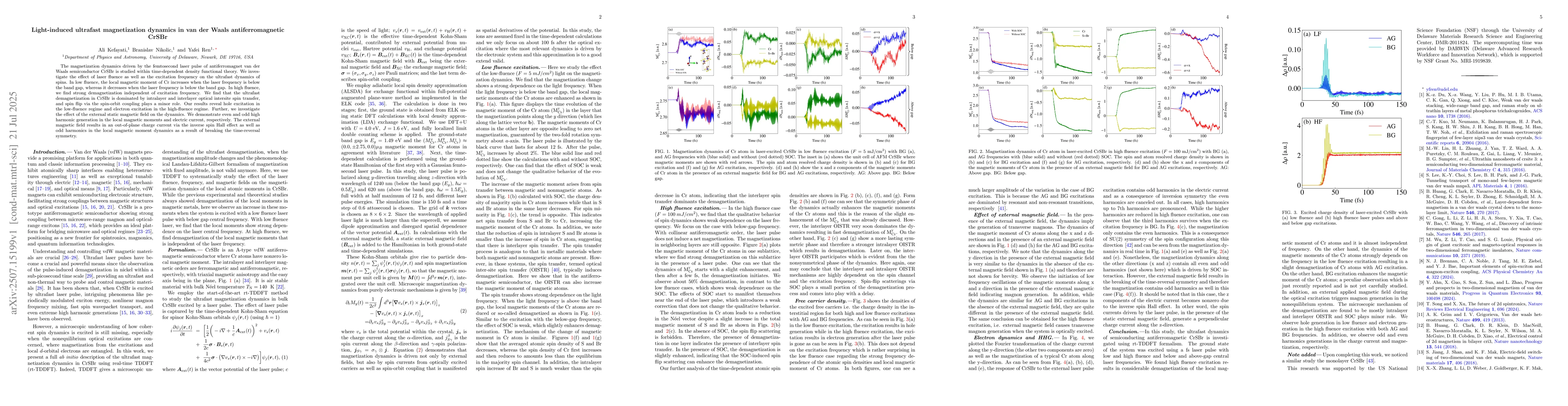 The paper presents a comprehensive TD-DFT study of ultrafast magnetization dynamics in CrSBr, elucidating the roles of laser fluence, excitation frequency, and external magnetic fields, and highlighting the importance of intersite spin transfer and spin-orbit coupling.