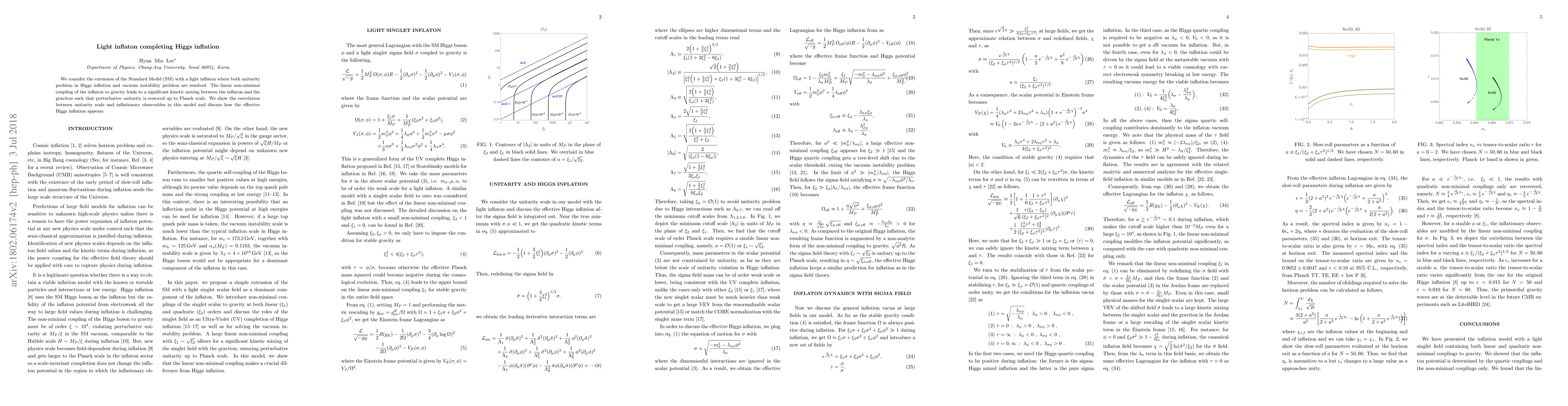 This paper extends the Standard Model by introducing a light inflaton to resolve unitarity and vacuum instability issues in Higgs inflation. It demonstrates that a linear non-minimal coupling to gravity restores perturbative unitarity up to the Planck scale and explores the correlation between the unitarity scale and inflationary observables.