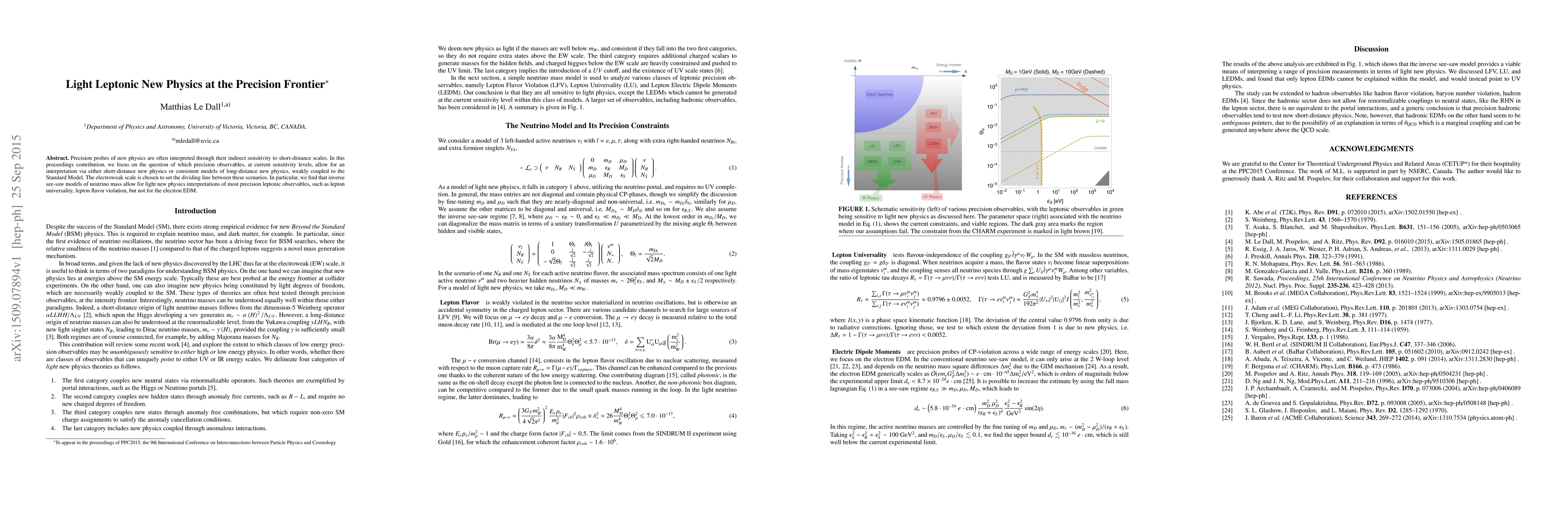 Precision probes of new physics are often interpreted through their indirect sensitivity to short-distance scales. In this proceedings contribution, we focus on the question of which precision observables, at current sensitivity levels, allow for an interpretation via either short-distance new physics or consistent models of long-distance new physics, weakly coupled to the Standard Model. The electroweak scale is chosen to set the dividing line between these scenarios. In particular, we find that inverse see-saw models of neutrino mass allow for light new physics interpretations of most precision leptonic observables, such as lepton universality, lepton flavor violation, but not for the electron EDM.