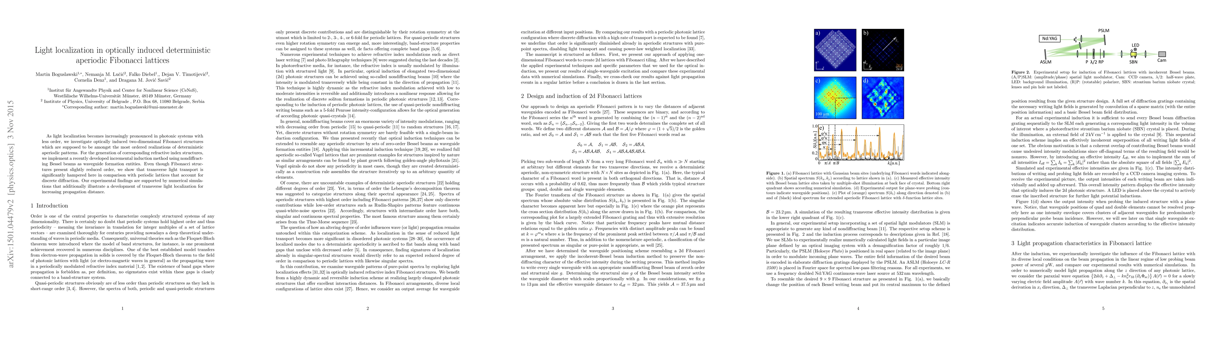 As light localization becomes increasingly pronounced in photonic systems with less order, we investigate optically induced two-dimensional Fibonacci structures which are supposed to be amongst the most ordered realizations of deterministic aperiodic patterns. For the generation of corresponding refractive index structures, we implement a recently developed incremental induction method using nondiffracting Bessel beams as waveguide formation entities. Even though Fibonacci structures present slightly reduced order, we show that transverse light transport is significantly hampered here in comparison with periodic lattices that account for discrete diffraction. Our experimental findings are supported by numerical simulations that additionally illustrate a development of transverse light localization for increasing propagation distance.
