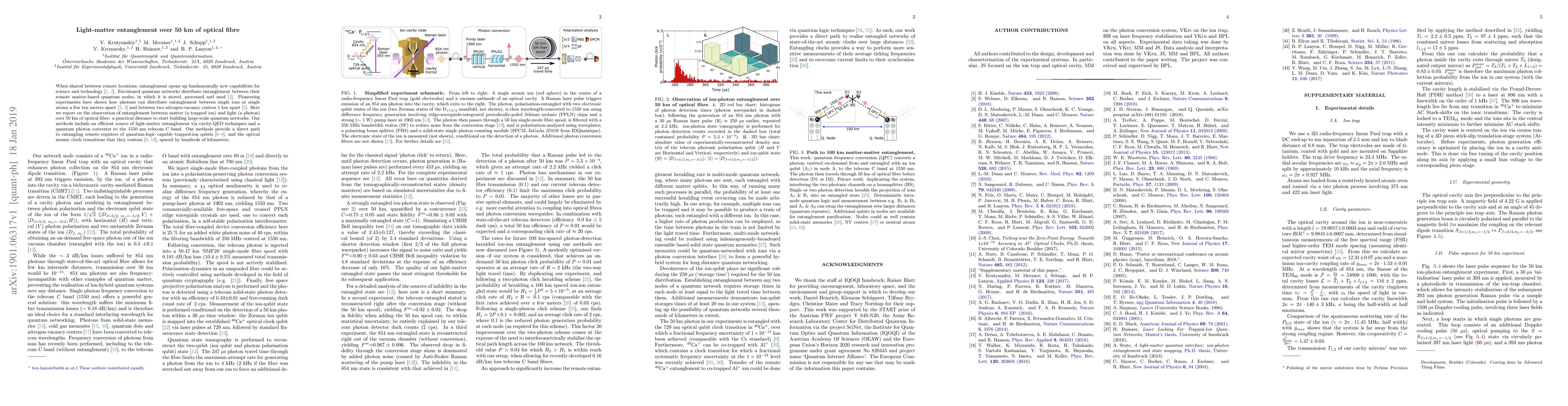This paper reports the successful observation of entanglement between a trapped ion and a photon over 50 km of optical fibre, leveraging cavity-QED techniques and telecom-band photon conversion. This achievement is a significant step towards building large-scale quantum networks.