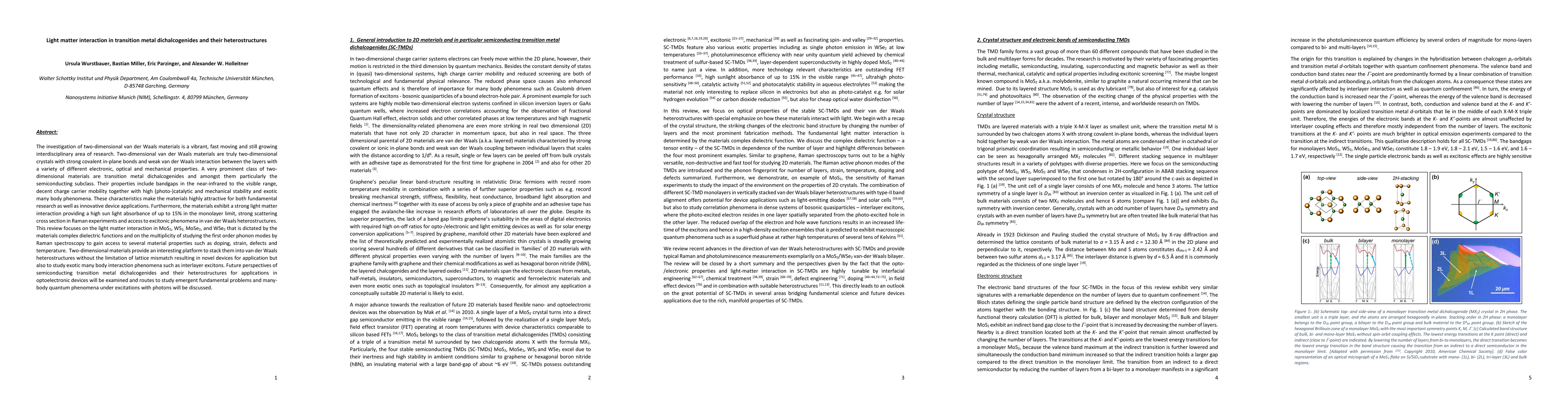 This review focuses on light matter interaction in transition metal dichalcogenides (TMDs) and their heterostructures, highlighting their high absorbance of sunlight and access to exotic many-body phenomena.