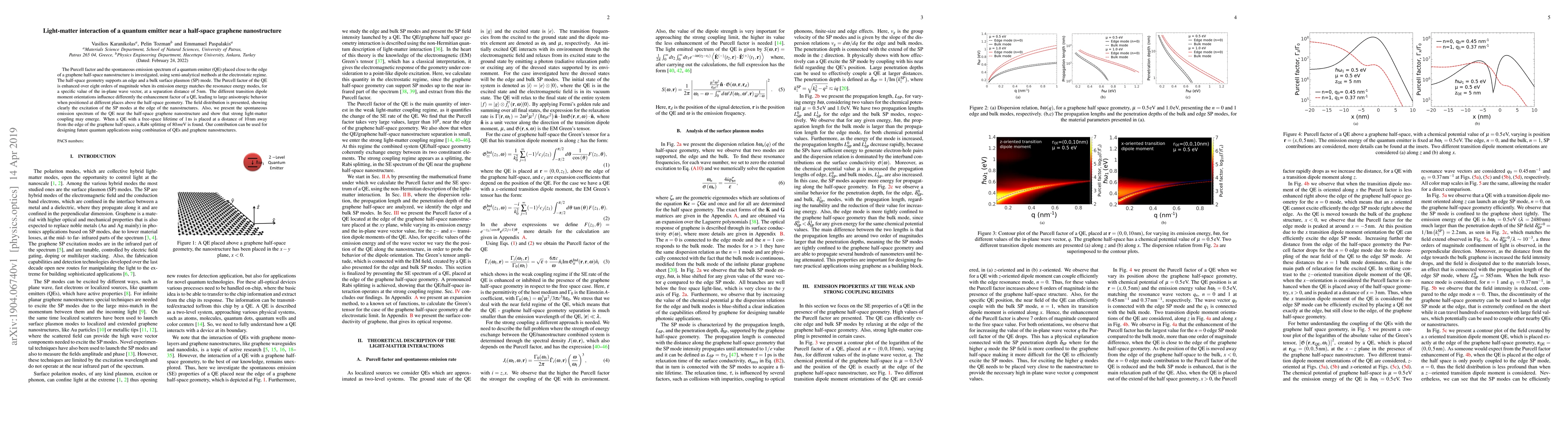 This paper investigates the light-matter interaction of a quantum emitter near a graphene half-space nanostructure, showing an eight-order-of-magnitude enhancement in the Purcell factor when emission energy matches resonance modes. The study reveals strong light-matter coupling and potential for designing future quantum applications.