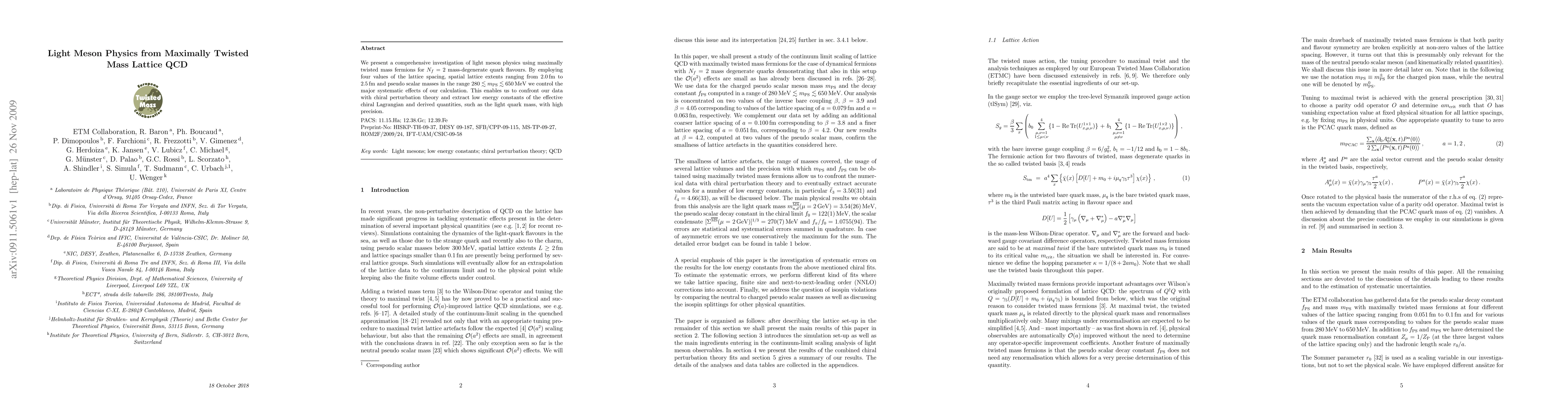 We present a comprehensive investigation of light meson physics using maximally twisted mass fermions for two mass-degenerate quark flavours. By employing four values of the lattice spacing, spatial lattice extents ranging from 2.0 fm to 2.5 fm and pseudo scalar masses in the range 280 MeV to 650 MeV we control the major systematic effects of our calculation. This enables us to confront our data with chiral perturbation theory and extract low energy constants of the effective chiral Lagrangian and derived quantities, such as the light quark mass, with high precision.