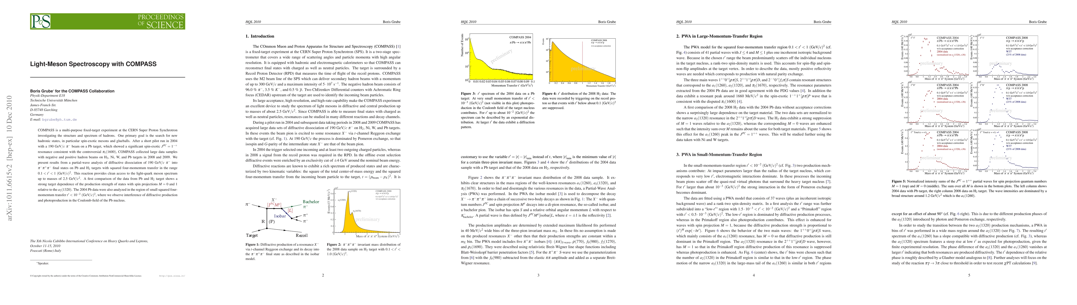 The COMPASS experiment at CERN investigates the light-meson spectrum through diffractive dissociation of 190 GeV/c $\pi^-$ beams, revealing significant spin-exotic resonances. Results show a strong target dependence in the production strength of certain meson states, with notable interference observed in Pb nucleus Coulomb fields.