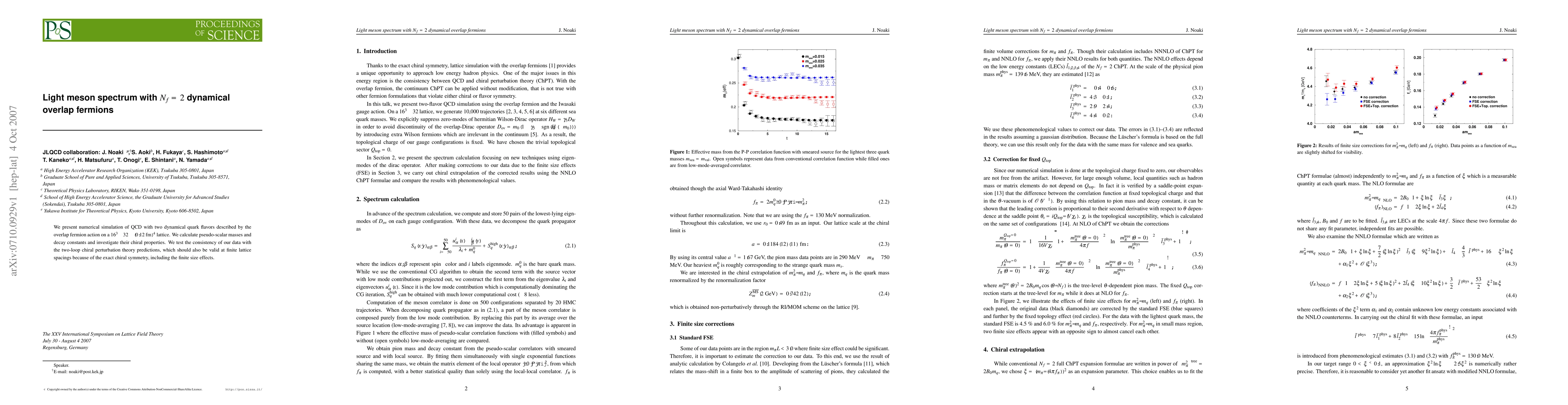 Researchers simulated QCD with 2 dynamical quark flavors using the overlap fermion action to study light meson spectrum, testing its consistency with chiral perturbation theory predictions.