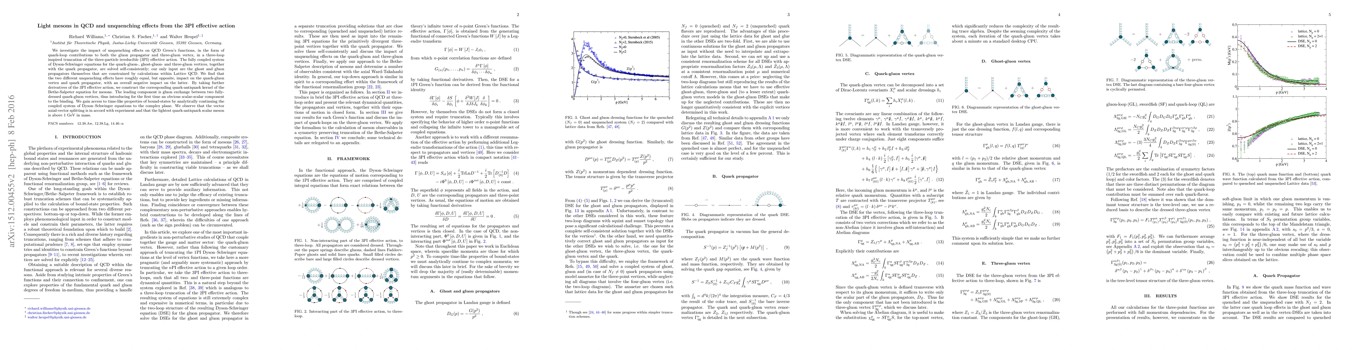 This paper explores unquenching effects in QCD through the 3PI effective action, finding that quark-loop contributions impact the quark-gluon vertex and quark propagator. The study reveals a new scalar-scalar component in meson binding and confirms the vector axial-vector splitting aligns with experimental data, predicting the lightest quark-antiquark scalar meson mass above 1 GeV.