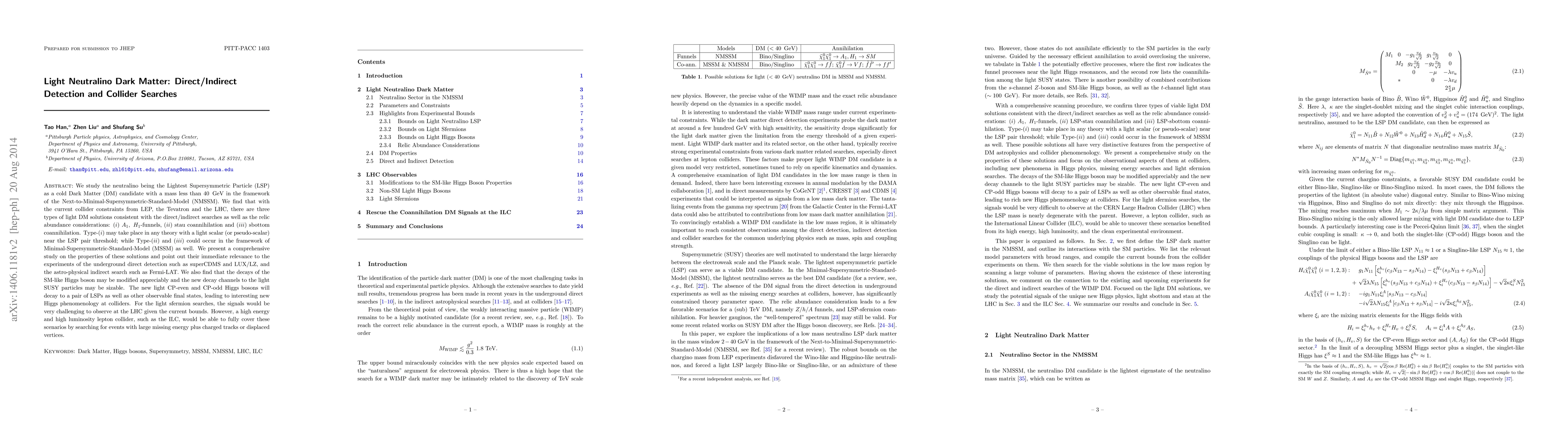 This paper investigates light neutralino dark matter in the NMSSM, identifying three viable solutions: A1, H1-funnels; stau coannihilation; and sbottom coannihilation. It highlights their relevance to direct/indirect detection experiments and suggests new Higgs phenomenology at colliders, while noting the challenges in observing light sfermions at the LHC, with potential for high-energy lepton colliders.