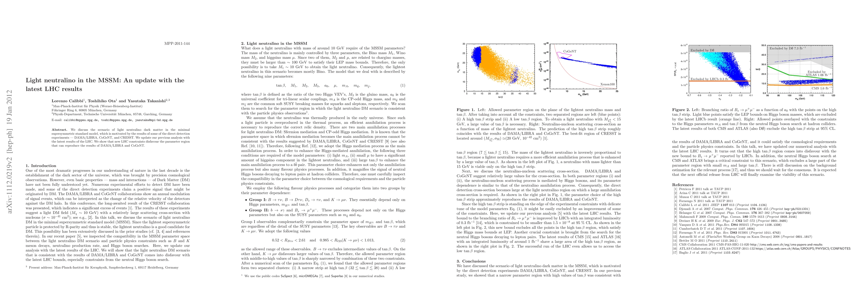 We discuss the scenario of light neutralino dark matter in the minimal supersymmetric standard model, which is motivated by the results of some of the direct detection experiments --- DAMA, CoGENT, and CRESST. We update our previous analysis with the latest results of the LHC. We show that new LHC constraints disfavour the parameter region that can reproduce the results of DAMA and CoGENT.