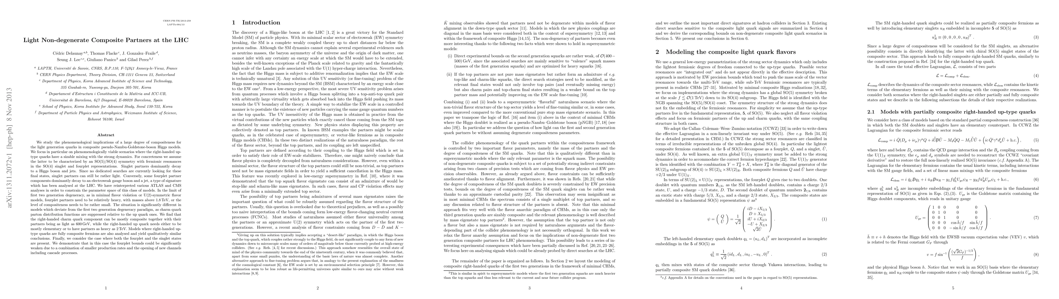 Researchers studied composite pseudo-Nambu-Goldstone-boson Higgs models to constrain parameter space, finding that light quark partners can be as light as 600 GeV for right-handed charm quarks but heavier for up quarks.