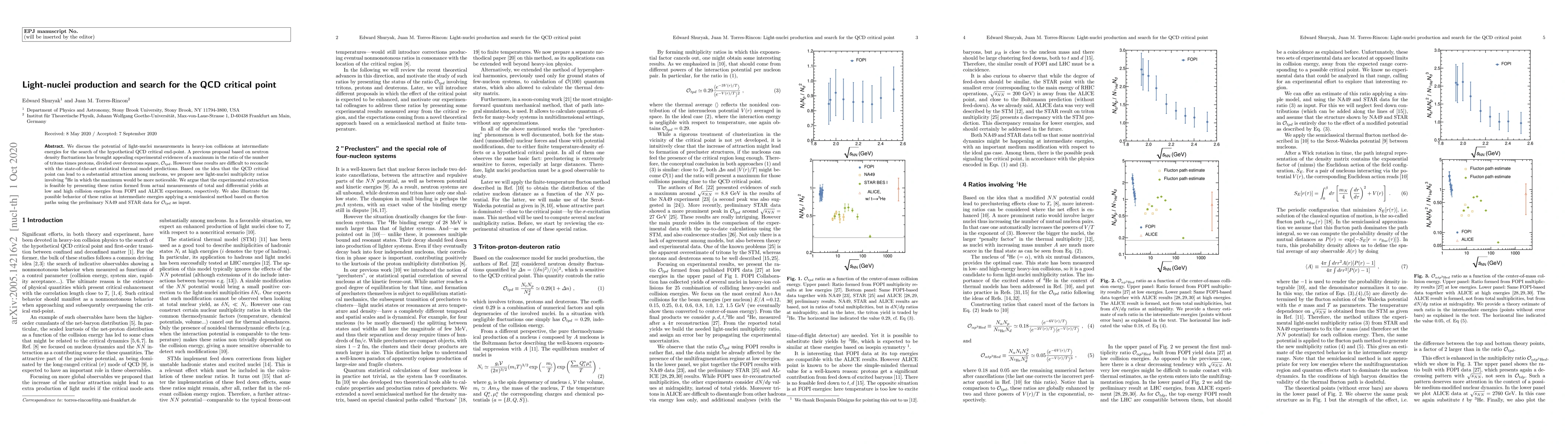 We discuss the potential of light-nuclei measurement in heavy-ion collisions at intermediate energies for the search of the hypothetical QCD critical end-point. A previous proposal based on neutron density fluctuations has brought appealing experimental evidences of a maximum in a ratio involving tritons, protons and deuterons, ${\cal O}_{tpd}$. However these results are difficult to reconcile with the state-of-the-art statistical thermal model predictions. Based on the idea that the QCD critical point can lead to a substantial attraction among nucleons, we propose new ratios involving $^4$He in which the maximum would be more evident. We argue that the experimental extraction is feasible by presenting actual measurements at low and high collision energies. We also illustrate the possible behavior of these ratios at intermediate energies applying the semiclassical method based on flucton paths using preliminary STAR data for ${\cal O}_{tpd}$.