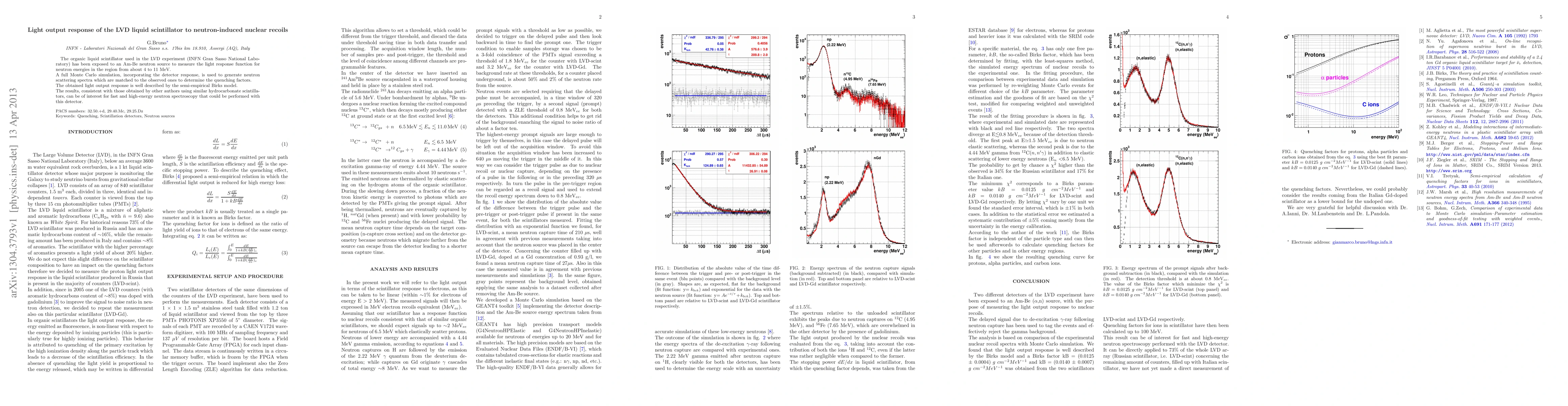 This study measures the light output response of the LVD liquid scintillator to neutron-induced nuclear recoils using an Am-Be neutron source and a Monte Carlo simulation. The results show that the semi-empirical Birks model accurately describes the light response, which is consistent with findings from similar scintillators and could enhance fast, high-energy neutron spectroscopy.