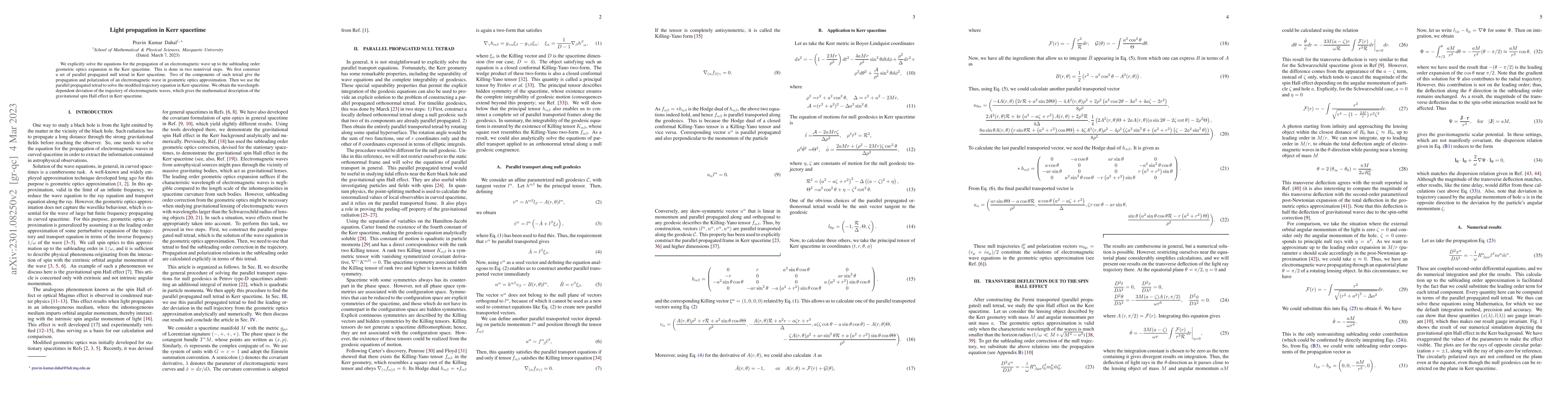 This paper solves the equations for electromagnetic wave propagation in Kerr spacetime to subleading order, constructing a parallel propagated null tetrad to describe wave propagation and polarization. It reveals the wavelength-dependent deviation of wave trajectories, mathematically describing the gravitational spin Hall effect.