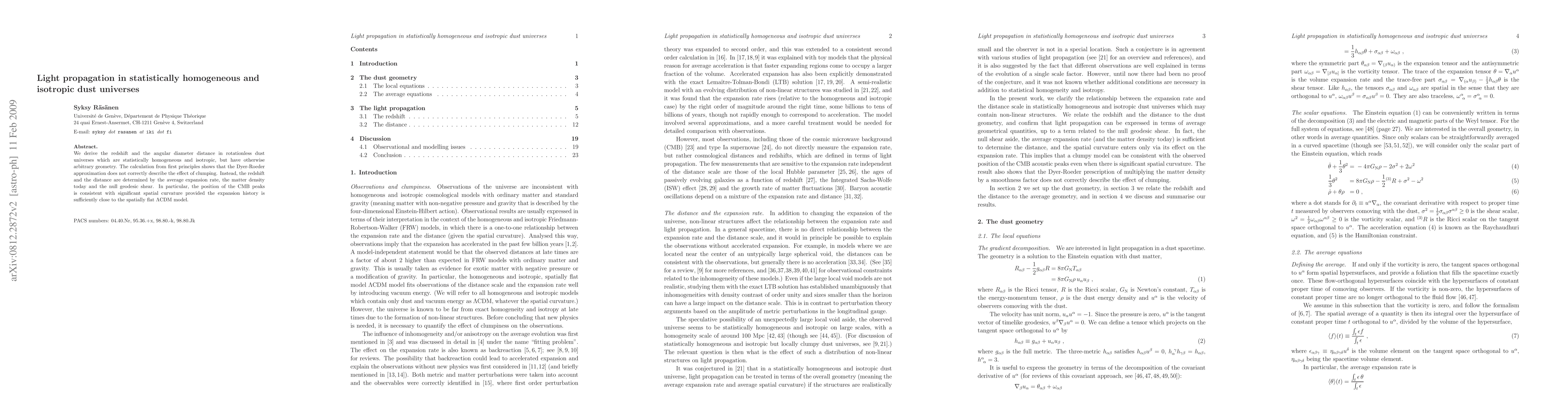 We derive the redshift and the angular diameter distance in rotationless dust universes which are statistically homogeneous and isotropic, but have otherwise arbitrary geometry. The calculation from first principles shows that the Dyer-Roeder approximation does not correctly describe the effect of clumping. Instead, the redshift and the distance are determined by the average expansion rate, the matter density today and the null geodesic shear. In particular, the position of the CMB peaks is consistent with significant spatial curvature provided the expansion history is sufficiently close to the spatially flat LambdaCDM model.