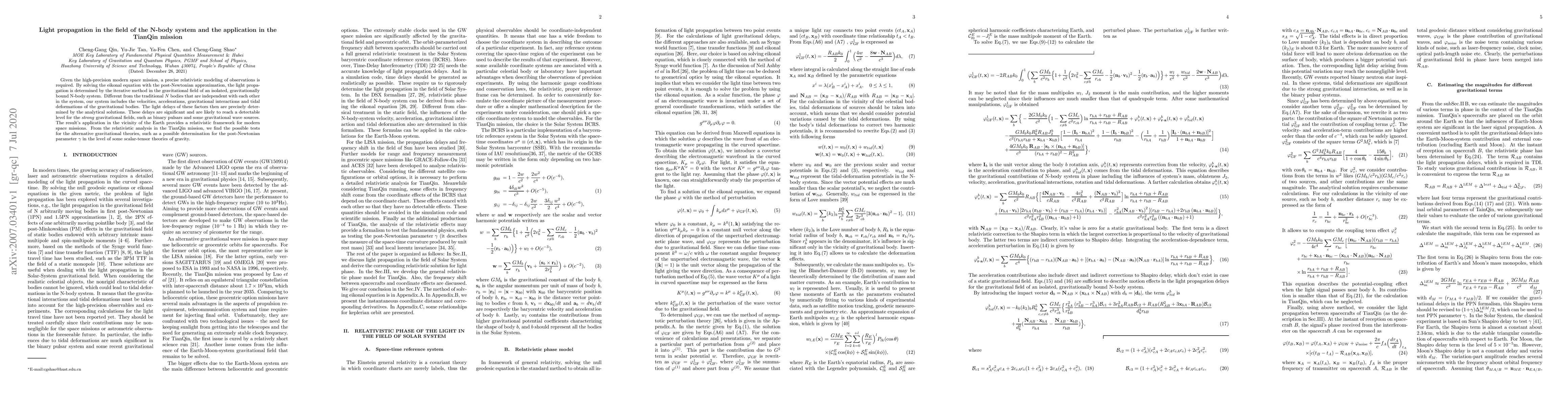 Given the high-precision modern space mission, a precise relativistic modeling of observations is required. By solving the eikonal equation with the post-Newtonian approximation, the light propagation is determined by the iterative method in the gravitational field of an isolated, gravitationally bound N-body system. Different from the traditional $N$ bodies that are independent with each other in the system, our system includes the velocities, accelerations, gravitational interactions and tidal deformations of the gravitational bodies. The light delays of these factors then are precisely determined by the analytical solutions. These delays are significant and are likely to reach a detectable level for the \emph{strong} gravitational fields, such as binary pulsars and some gravitational wave sources. The result's application in the vicinity of the Earth provides a relativistic framework for modern space missions. From the relativistic analysis in the TianQin mission, we find the possible tests for the alternative gravitational theories, such as a possible determination for the post-Newtonian parameter $\gamma$ in the level of some scalar-tensor theories of gravity.