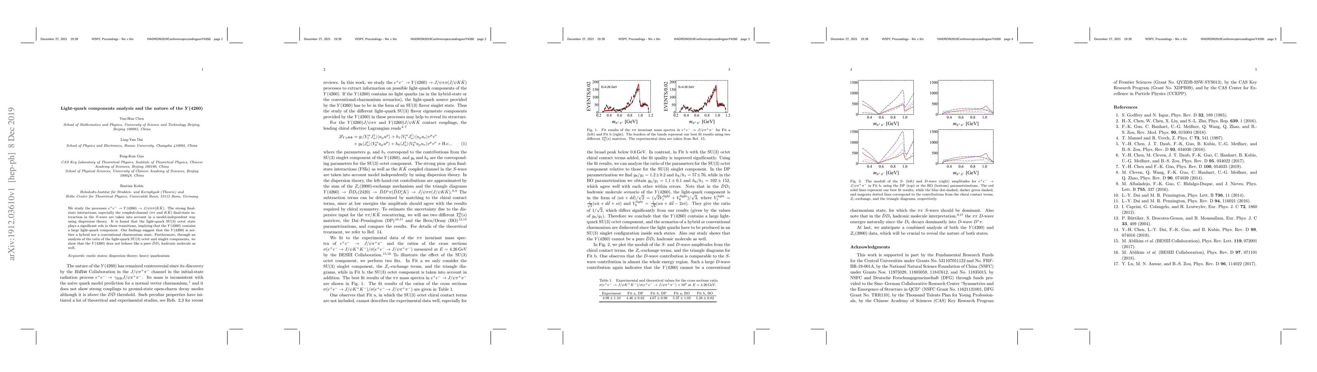 We study the processes $e^+ e^- \to Y(4260) \to J/\psi \pi\pi(K\bar{K})$. The strong final-state interactions, especially the coupled-channel ($\pi\pi$ and $K\bar{K}$) final-state interaction in the $S$-wave are taken into account in a model-independent way using dispersion theory. It is found that the light-quark SU(3) octet state plays a significant role in these transitions, implying that the $Y(4260)$ contains a large light-quark component. Our findings suggest that the $Y(4260)$ is neither a hybrid nor a conventional charmonium state. Furthermore, through an analysis of the ratio of the light-quark SU(3) octet and singlet components, we show that the $Y(4260)$ does not behave like a pure $\bar D D_1$ hadronic molecule as well.