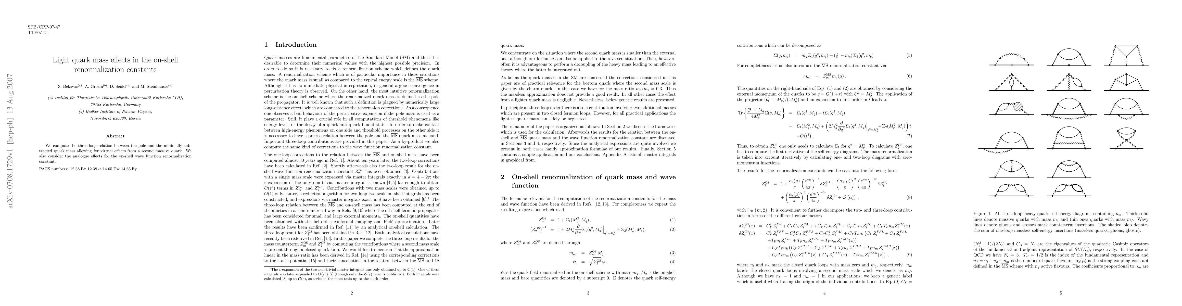 Summary: This paper computes three-light-loop relations for on-shell renormalization constants, incorporating virtual effects from a second massive quark, and examines analogous effects for the on-shell wave function renormalization constant.