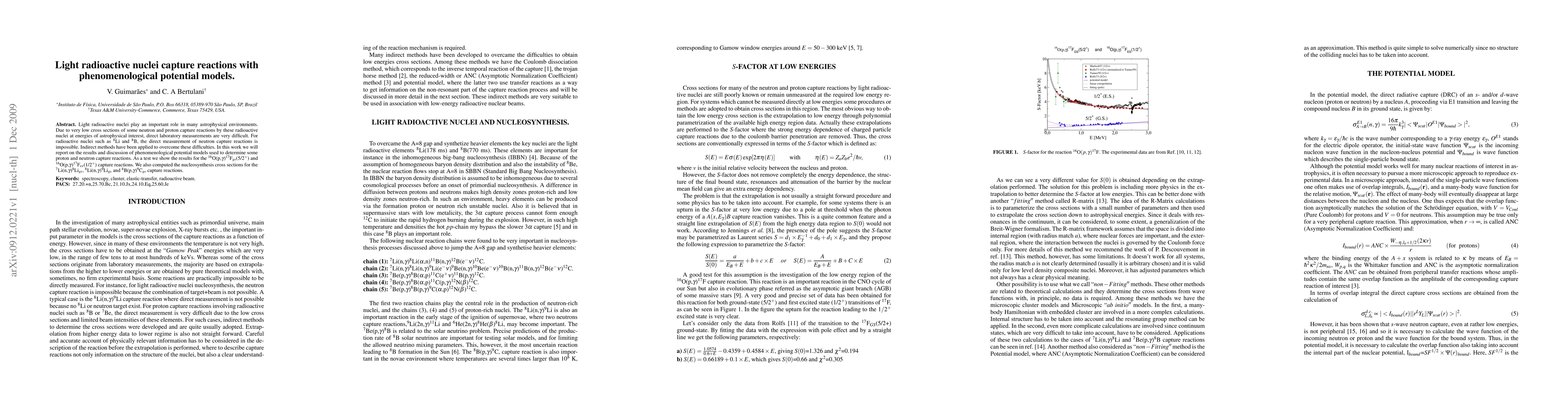 This paper explores the use of phenomenological potential models to determine neutron and proton capture reactions for light radioactive nuclei, which are challenging to measure directly. The study focuses on reactions like 16O(p,γ)17F and computes nucleosynthesis cross sections for 7Li(n,γ)8Li, 8Li(n,γ)9Li, and 8B(p,γ)9C.
