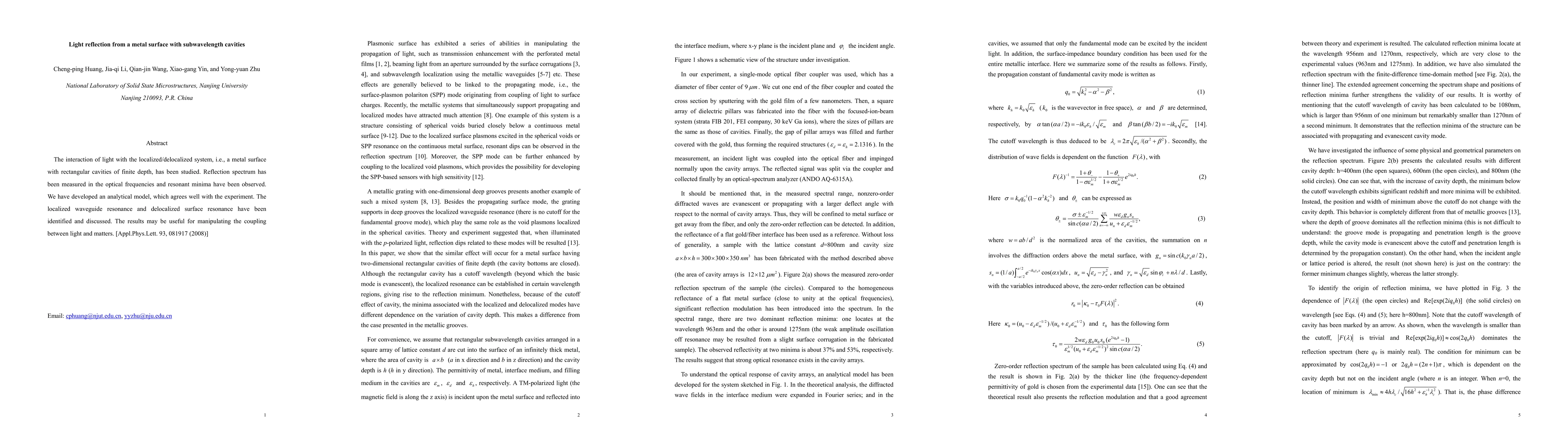 The interaction of light with the localized/delocalized system, i.e., a metal surface with rectangular cavities of finite depth, has been studied. Reflection spectrum has been measured in the optical frequencies and resonant minima have been observed. We have developed an analytical model, which agrees well with the experiment. The localized waveguide resonance and delocalized surface resonance have been identified and discussed. The results may be useful for manipulating the coupling between light and matters.