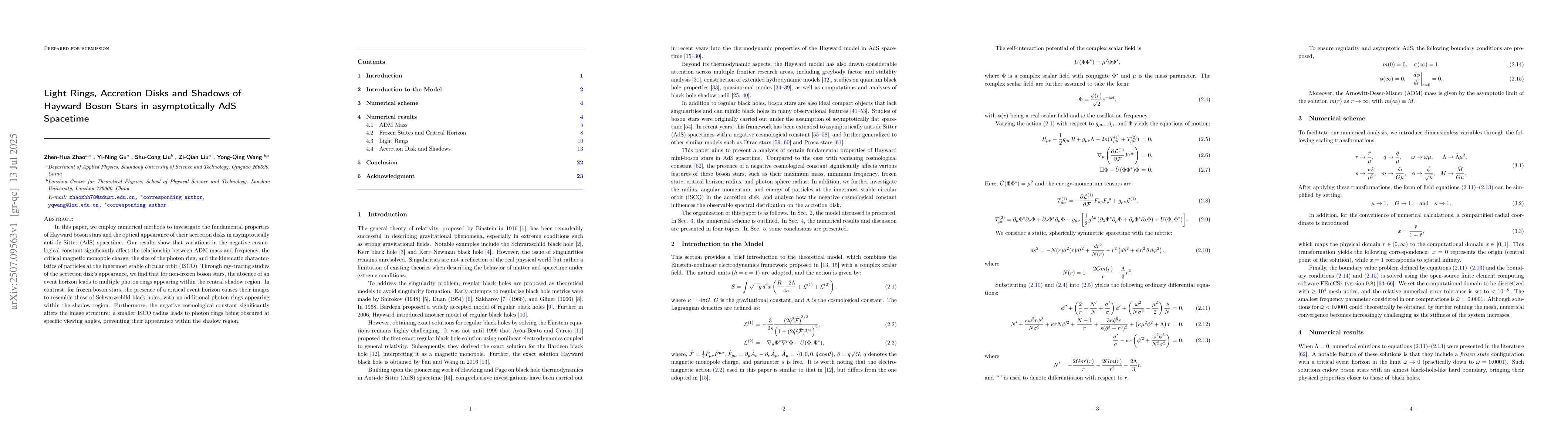 In this paper, we employ numerical methods to investigate the fundamental properties of Hayward boson stars and the optical appearance of their accretion disks in asymptotically anti-de Sitter (AdS) spacetime. Our results show that variations in the negative cosmological constant significantly affect the relationship between ADM mass and frequency, the critical magnetic monopole charge, the size of the photon ring, and the kinematic characteristics of particles at the innermost stable circular orbit (ISCO). Through ray-tracing studies of the accretion disk's appearance, we find that for non-frozen boson stars, the absence of an event horizon leads to multiple photon rings appearing within the central shadow region. In contrast, for frozen boson stars, the presence of a critical event horizon causes their images to resemble those of Schwarzschild black holes, with no additional photon rings appearing within the shadow region. Furthermore, the negative cosmological constant significantly alters the image structure: a smaller ISCO radius leads to photon rings being obscured at specific viewing angles, preventing their appearance within the shadow region.