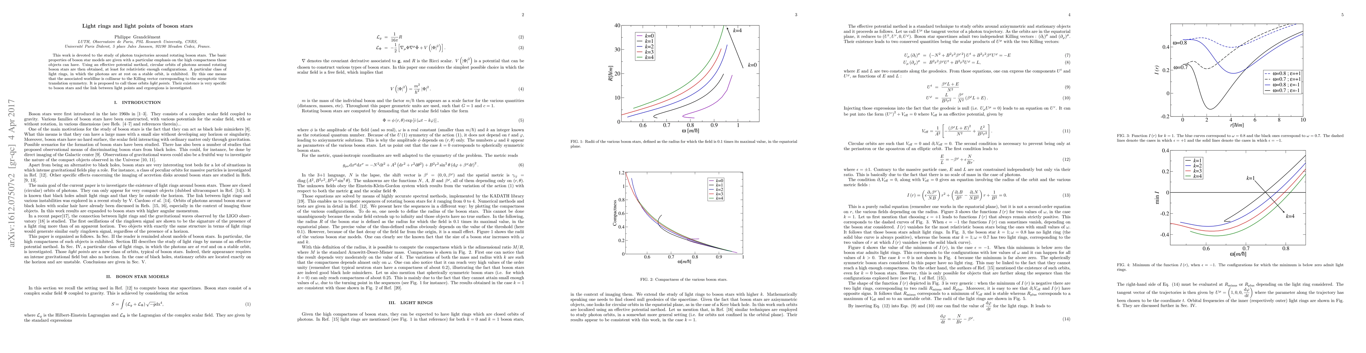 This work is devoted to the study of photon trajectories around rotating boson stars. The basic properties of boson star models are given with a particular emphasis on the high compactness those objects can have. Using an effective potential method, circular orbits of photons around rotating boson stars are then obtained, at least for relativistic enough configurations. A particular class of light rings, in which the photons are at rest on a stable orbit, is exhibited. By this one means that the associated worldline is collinear to the Killing vector corresponding to the asymptotic time translation symmetry. It is proposed to call those orbits light points. Their existence is very specific to boson stars and the link between light points and ergoregions is investigated.