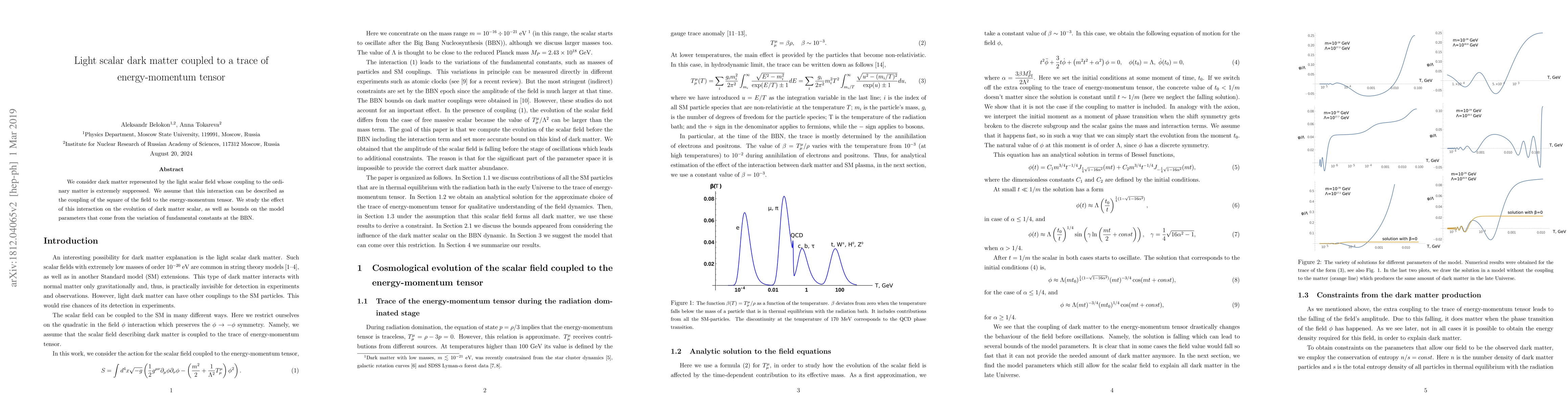 We consider dark matter represented by the light scalar field whose coupling to the ordinary matter is extremely suppressed. We assume that this interaction can be described as the coupling of the square of the field to the energy-momentum tensor. We study the effect of this interaction on the evolution of dark matter scalar, as well as bounds on the model parameters that come from the variation of fundamental constants at the BBN.