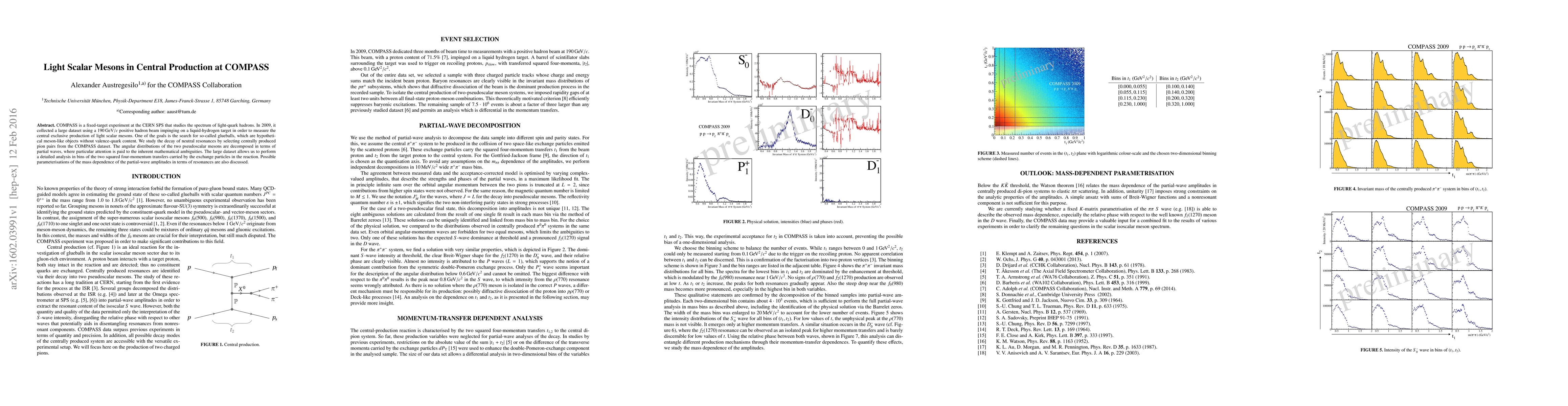The COMPASS experiment at CERN investigates the central production of light scalar mesons, focusing on the search for glueballs, and analyzes the decay of neutral resonances through centrally produced pion pairs. The study details angular distributions and partial-wave decompositions, addressing mathematical ambiguities and exploring mass dependence parameterizations.