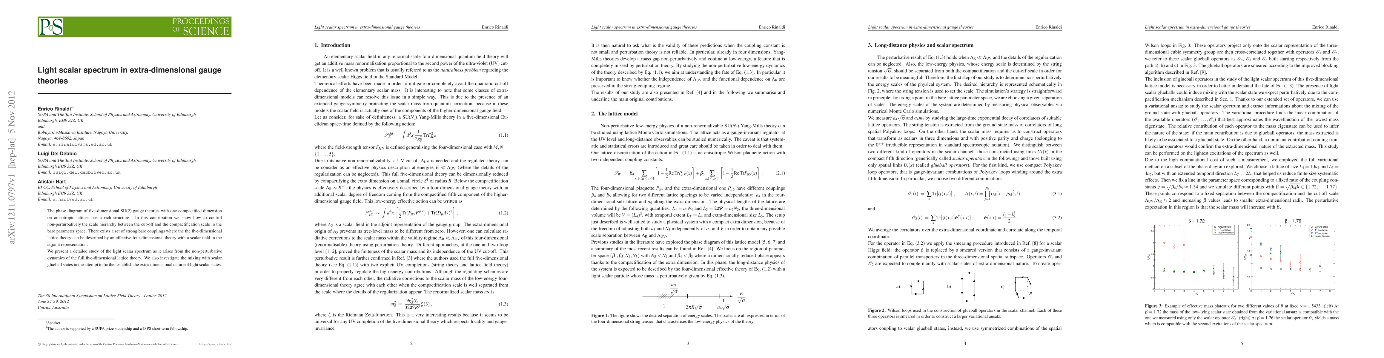 The phase diagram of five-dimensional SU(2) gauge theories with one compactified dimension on anisotropic lattices has a rich structure. In this contribution we show how to control non-perturbatively the scale hierarchy between the cut-off and the compactification scale in the bare parameter space. There exists a set of strong bare couplings where the the five-dimensional lattice theory can be described by an effective four-dimensional theory with a scalar field in the adjoint representation. We present a detailed study of the light scalar spectrum as it arises from the non-perturbative dynamics of the full five-dimensional lattice theory. We also investigate the mixing with scalar glueball states in the attempt to further establish the extra-dimensional nature of light scalar states.
