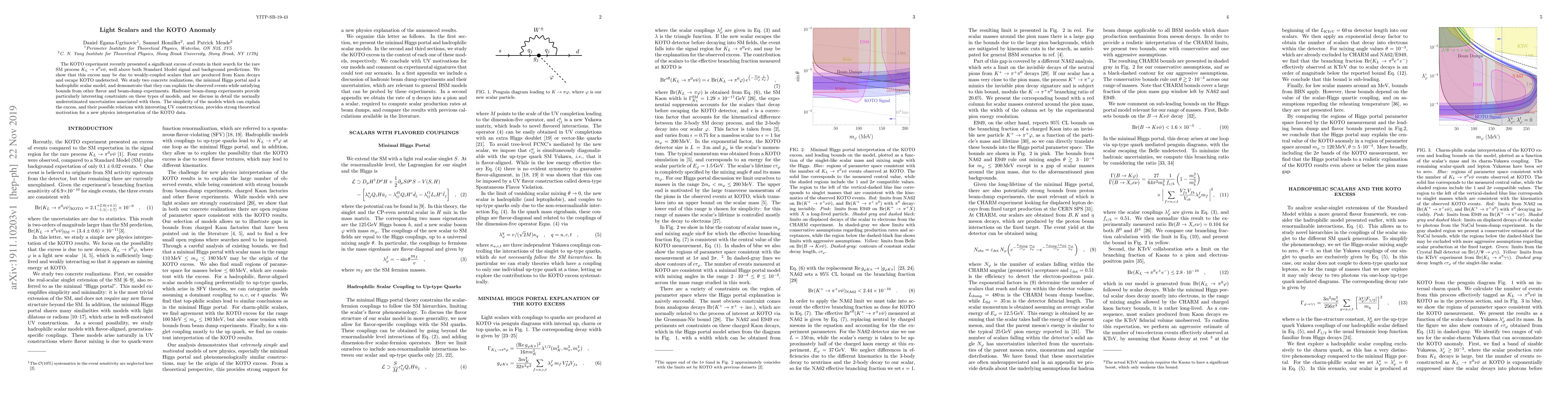 The KOTO experiment recently presented a significant excess of events in their search for the rare SM process $K_L \to \pi^0\nu\bar{\nu}$, well above both Standard Model signal and background predictions. We show that this excess may be due to weakly-coupled scalars that are produced from Kaon decays and escape KOTO undetected. We study two concrete realizations, the minimal Higgs portal and a hadrophilic scalar model, and demonstrate that they can explain the observed events while satisfying bounds from other flavor and beam-dump experiments. Hadronic beam-dump experiments provide particularly interesting constraints on these types of models, and we discuss in detail the normally underestimated uncertainties associated with them. The simplicity of the models which can explain the excess, and their possible relations with interesting UV constructions, provides strong theoretical motivation for a new physics interpretation of the KOTO data.