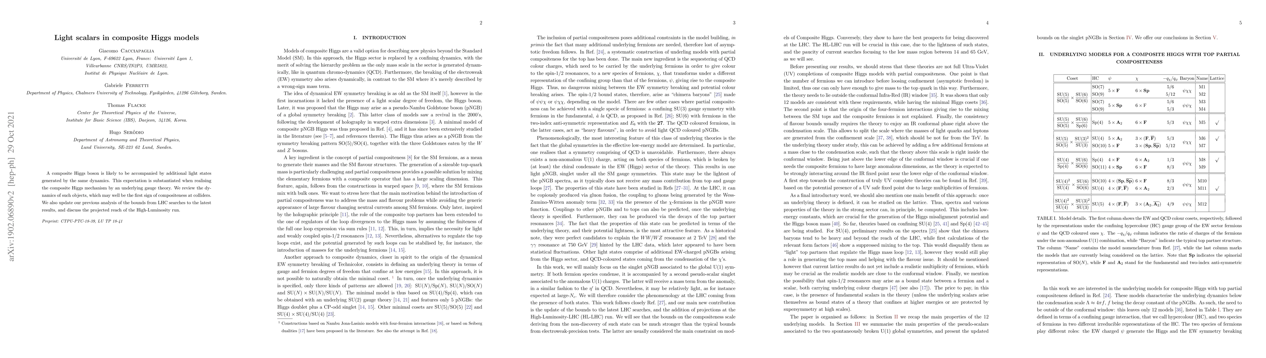 This paper reviews the dynamics of light scalars accompanying composite Higgs models, emphasizing their potential as early collider signals of compositeness. It updates previous analyses with the latest LHC results and discusses the future reach of the High-Luminosity run.