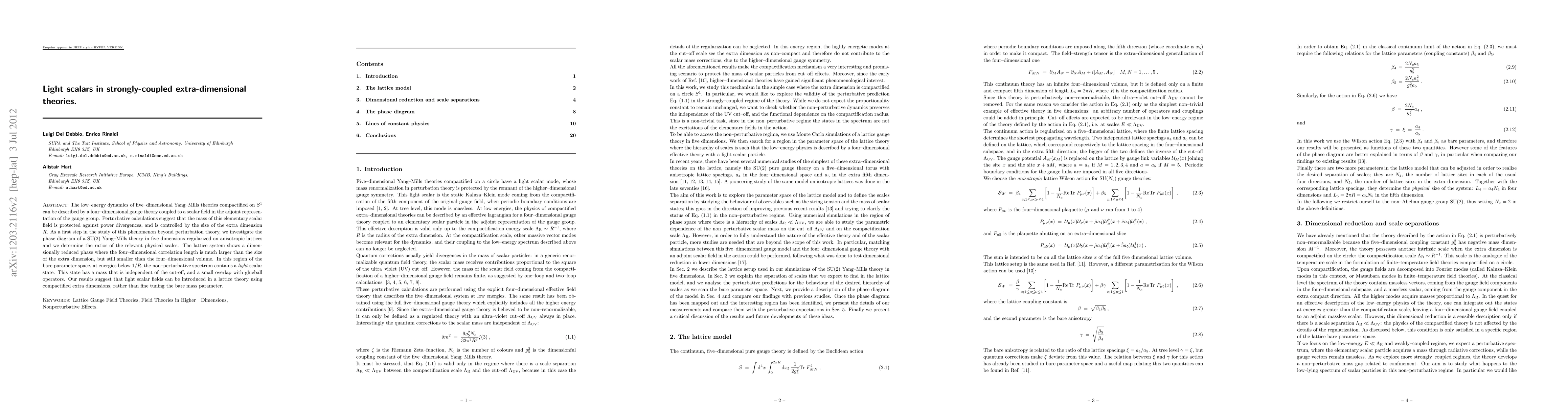 The low-energy dynamics of five-dimensional Yang-Mills theories compactified on S^1 can be described by a four-dimensional gauge theory coupled to a scalar field in the adjoint representation of the gauge group. Perturbative calculations suggest that the mass of this elementary scalar field is protected against power divergences, and is controlled by the size of the extra dimension R. As a first step in the study of this phenomenon beyond perturbation theory, we investigate the phase diagram of a SU(2) Yang-Mills theory in five dimensions regularized on anisotropic lattices and we determine the ratios of the relevant physical scales. The lattice system shows a dimensionally reduced phase where the four-dimensional correlation length is much larger than the size of the extra dimension, but still smaller than the four-dimensional volume. In this region of the bare parameter space, at energies below 1/R, the non-perturbative spectrum contains a \emph{light} scalar state. This state has a mass that is independent of the cut-off, and a small overlap with glueball operators. Our results suggest that light scalar fields can be introduced in a lattice theory using compactified extra dimensions, rather than fine tuning the bare mass parameter.