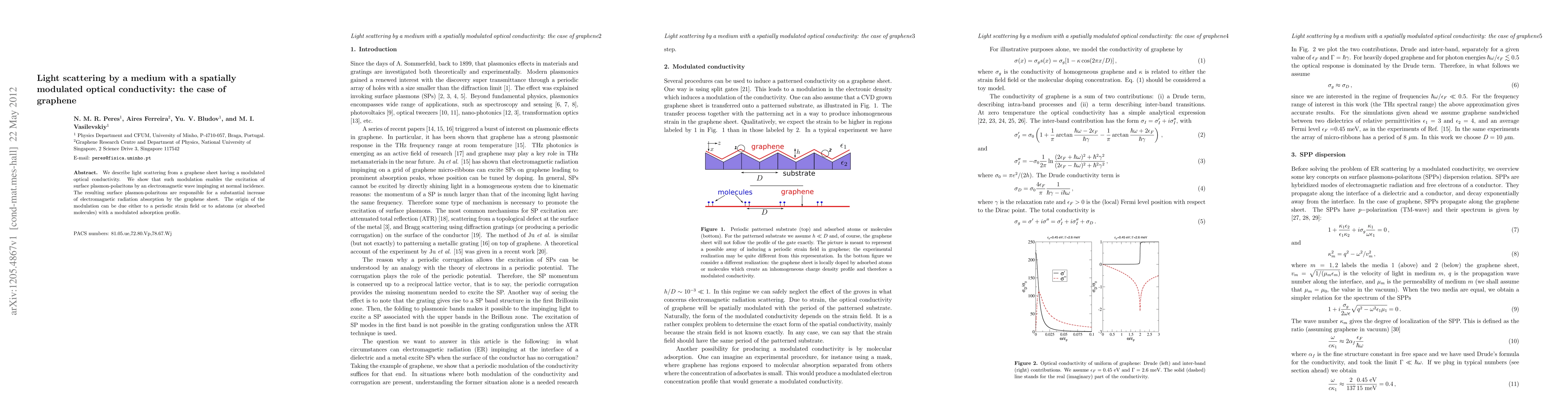 We describe light scattering from a graphene sheet having a modulated optical conductivity. We show that such modulation enables the excitation of surface plasmon-polaritons by an electromagnetic wave impinging at normal incidence. The resulting surface plasmon-polaritons are responsible for a substantial increase of electromagnetic radiation absorption by the graphene sheet. The origin of the modulation can be due either to a periodic strain field or to adatoms (or absorbed molecules) with a modulated adsorption profile.