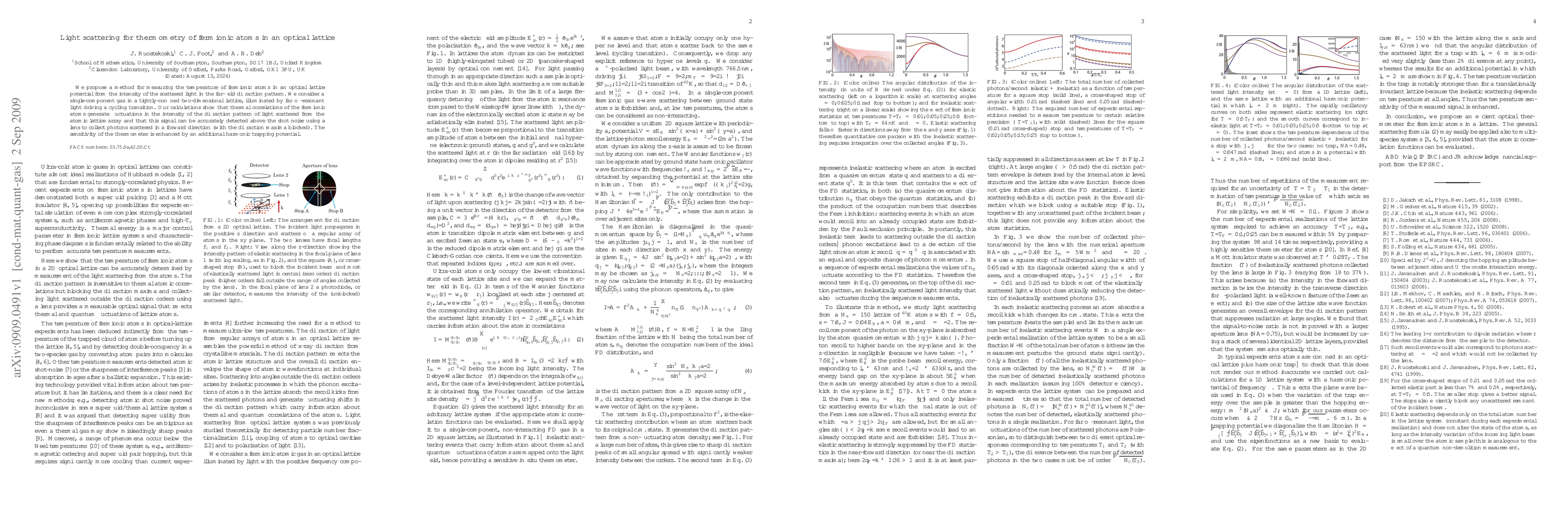 This paper proposes a thermometry method for fermionic atoms in an optical lattice by analyzing light scattering intensity in the far-field diffraction pattern. The method leverages thermal correlations to detect fluctuations in the scattered light, which can be accurately measured above shot noise, enhancing sensitivity with an additional harmonic trapping potential.