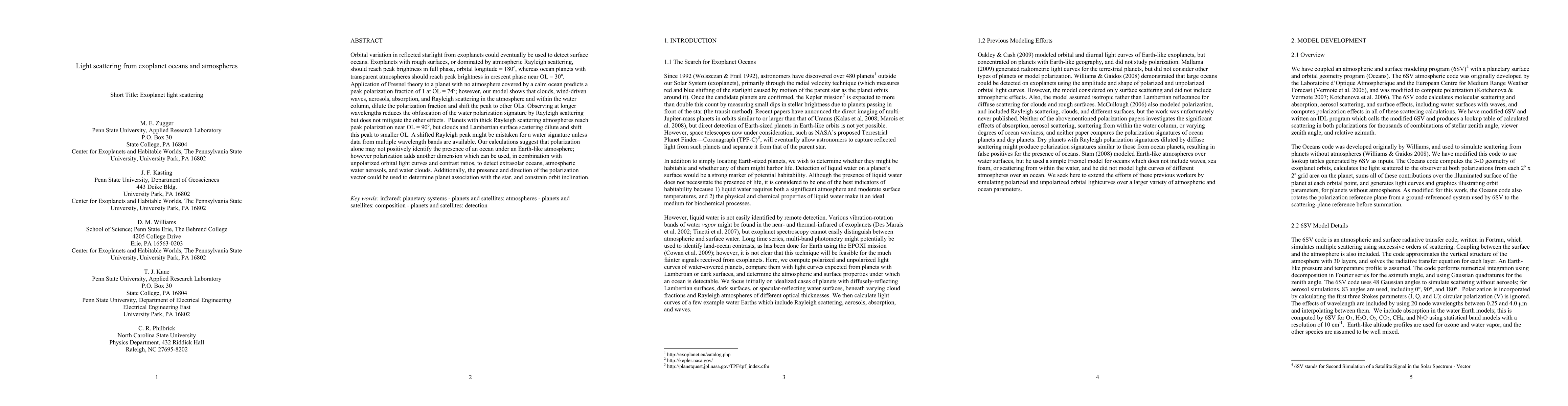 This paper explores the light scattering from exoplanet oceans and atmospheres, suggesting that polarization patterns can indicate the presence of oceans. It finds that while polarization can be diluted by atmospheric effects, it, combined with other observational data, can help detect extrasolar oceans and atmospheric water features.