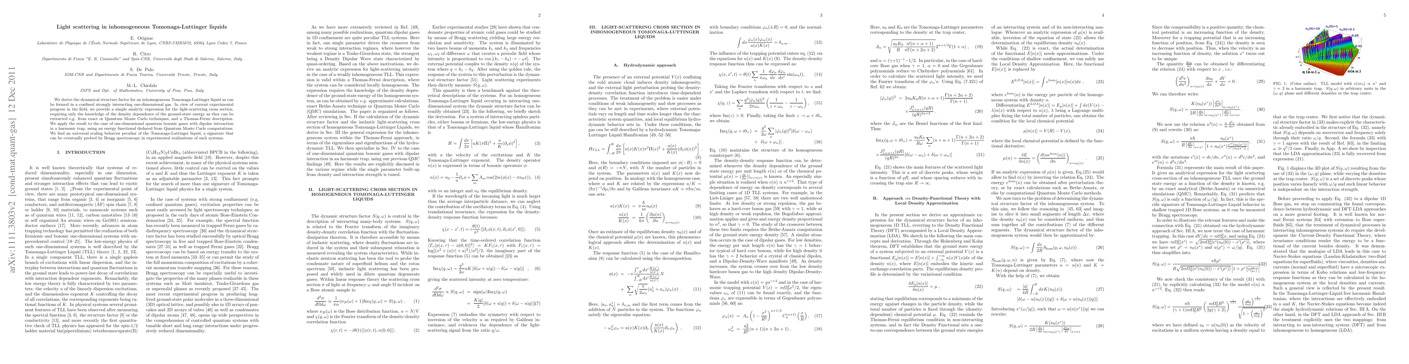 This paper derives the dynamical structure factor for inhomogeneous Tomonaga-Luttinger liquids in confined one-dimensional gases, providing an analytic expression for light-scattering cross sections. The findings reveal universal scaling behavior specific to Tomonaga-Luttinger liquids, which may be detected via Bragg spectroscopy in experiments.