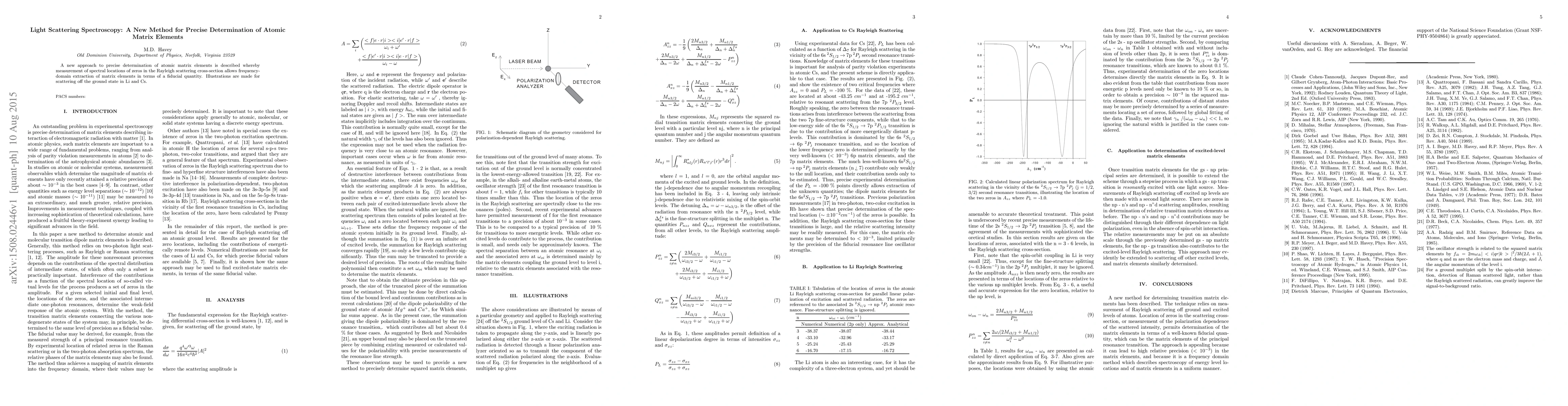 This paper introduces a novel method for accurately determining atomic matrix elements through light scattering spectroscopy, utilizing the spectral locations of zeros in the Rayleigh scattering cross-section for frequency-domain extraction. The method is demonstrated for scattering off ground states in lithium and cesium.