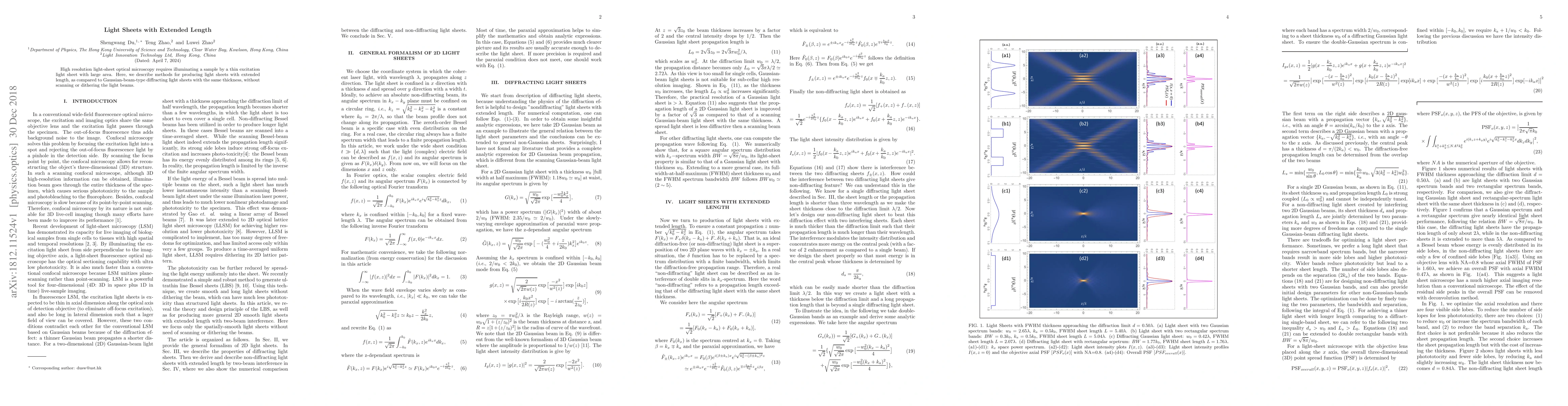 High resolution light-sheet optical microscopy requires illuminating a sample by a thin excitation light sheet with large area. Here, we describe methods for producing light sheets with extended length, as compared to Gaussian-beam-type diffracting light sheets with the same thickness, without scanning or dithering the light beams.