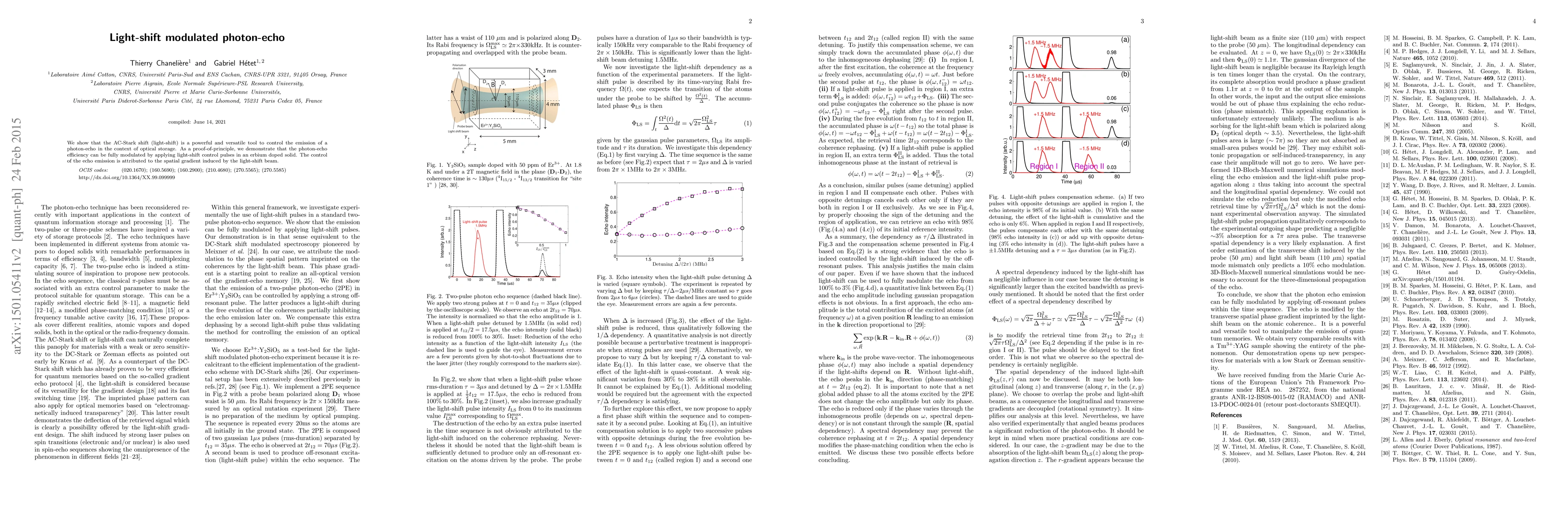 We show that the AC-Stark shift (light-shift) is a powerful and versatile tool to control the emission of a photon-echo in the context of optical storage. As a proof-of-principle, we demonstrate that the photon-echo efficiency can be fully modulated by applying light-shift control pulses in an erbium doped solid. The control of the echo emission is attributed to the spatial gradient induced by the light-shift beam.