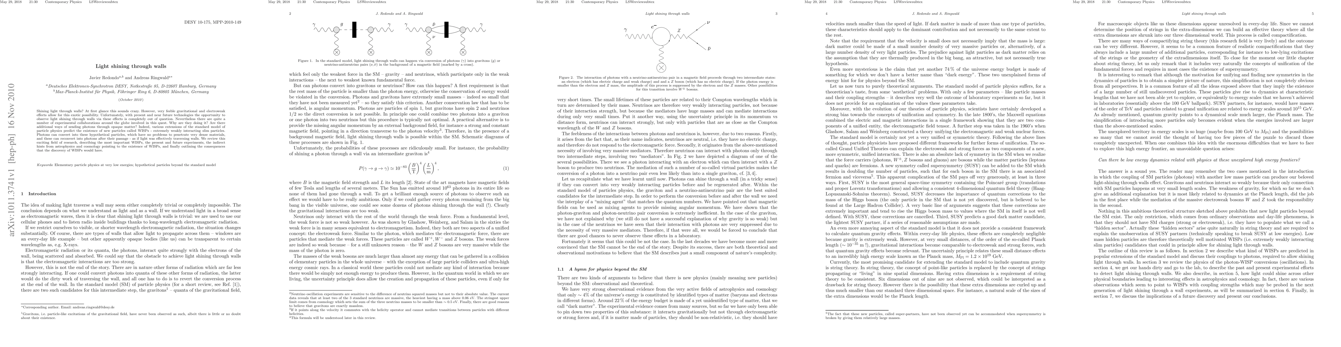 This paper explores the theoretical possibility of light shining through walls via weakly interacting slim particles (WISPs), which could convert photons into these particles that easily penetrate dense materials and reconvert back. It discusses the ongoing experimental efforts and potential implications of discovering WISPs.