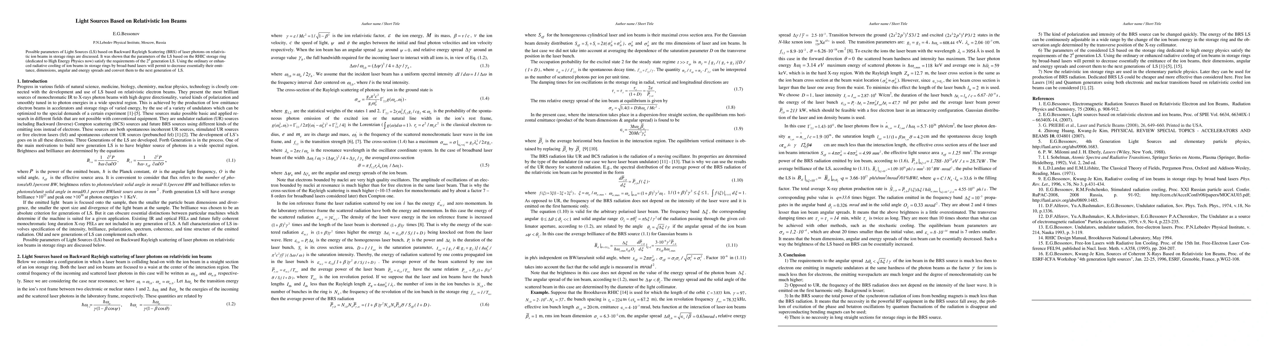 Possible parameters of Light Sources (LS) based on Backward Rayleigh Scattering (BRS) of laser photons on relativistic ion beams in storage rings are discussed. It was shown that the parameters of the LS based on the RHIC storage ring (dedicated to High Energy Physics now) satisfy the requirements of the 2d generation LS. Using the ordinary or enhanced radiative cooling of ion beams in storage rings by broad-band lasers will permit to decrease essentially their emittance, dimensions, angular and energy spreads and convert them to the next generation of LS.