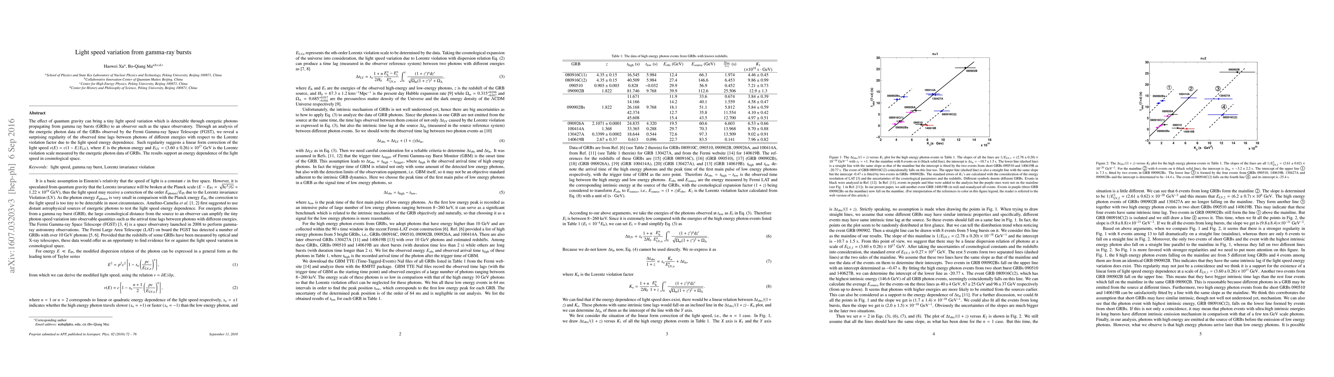 The effect of quantum gravity can bring a tiny light speed variation which is detectable through energetic photons propagating from gamma ray bursts (GRBs) to an observer such as the space observatory. Through an analysis of the energetic photon data of the GRBs observed by the Fermi Gamma-ray Space Telescope (FGST), we reveal a surprising regularity of the observed time lags between photons of different energies with respect to the Lorentz violation factor due to the light speed energy dependence. Such regularity suggests a linear form correction of the light speed $v(E)=c(1-E/E_{\rm LV})$, where $E$ is the photon energy and $E_{\rm LV}=(3.60 \pm 0.26) \times 10^{17}~ \rm GeV$ is the Lorentz violation scale measured by the energetic photon data of GRBs. The results support an energy dependence of the light speed in cosmological space.