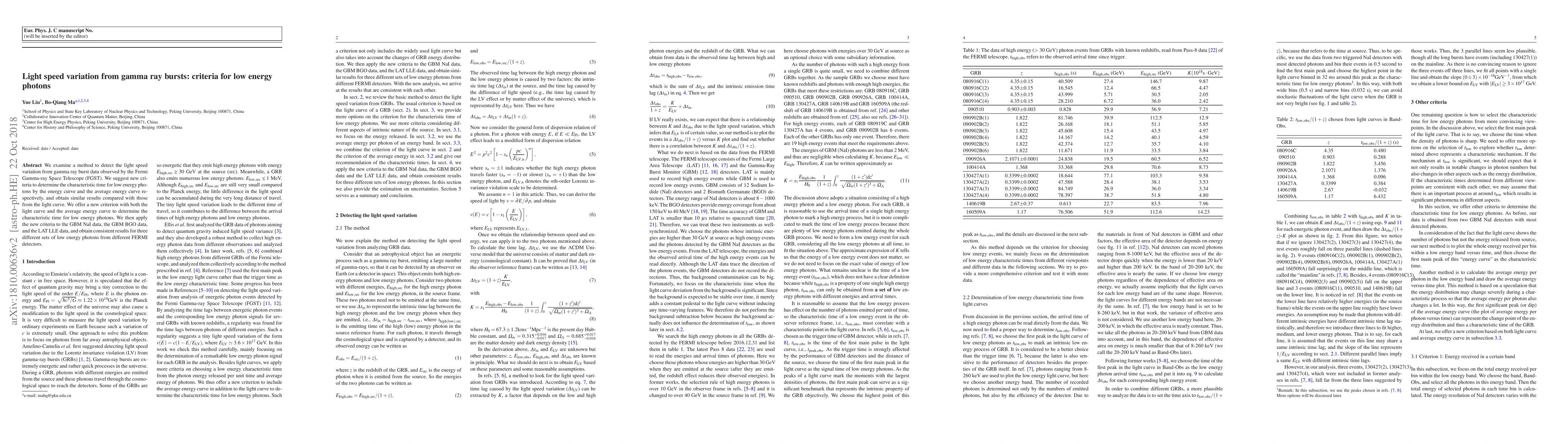 Researchers developed new criteria to detect light speed variation from gamma ray bursts, obtaining consistent results across three different Fermi detectors.