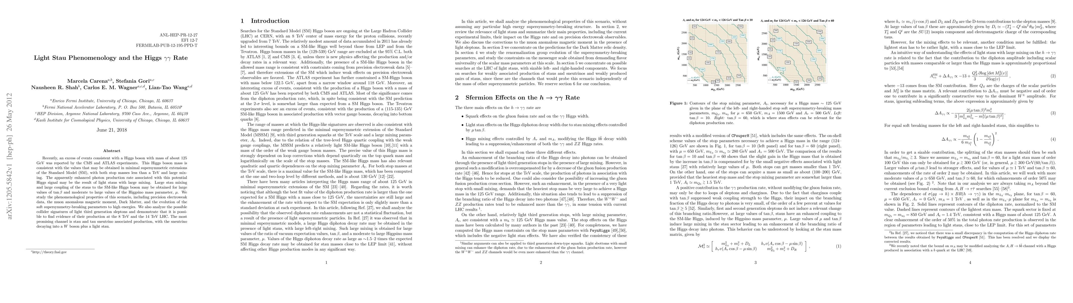 Recently, an excess of events consistent with a Higgs boson with mass of about 125 GeV was reported by the CMS and ATLAS experiments. This Higgs boson mass is consistent with the values that may be obtained in minimal supersymmetric extensions of the Standard Model (SM), with both stop masses less than a TeV and large mixing. The apparently enhanced photon production rate associated with this potential Higgs signal may be the result of light staus with large mixing. Large stau mixing and large coupling of the staus to the SM-like Higgs boson may be obtained for large values of tan \beta, and moderate to large values of the Higgsino mass parameter, \mu. We study the phenomenological properties of this scenario, including precision electroweak data, the muon anomalous magnetic moment, Dark Matter, and the evolution of the soft supersymmetry-breaking parameters to high energies. We also analyze the possible collider signatures of light third generation sleptons and demonstrate that it is possible to find evidence of their production at the 8 TeV and the 14 TeV LHC. The most promising channel is stau and tau sneutrino associated production, with the sneutrino decaying into a W boson plus a light stau.