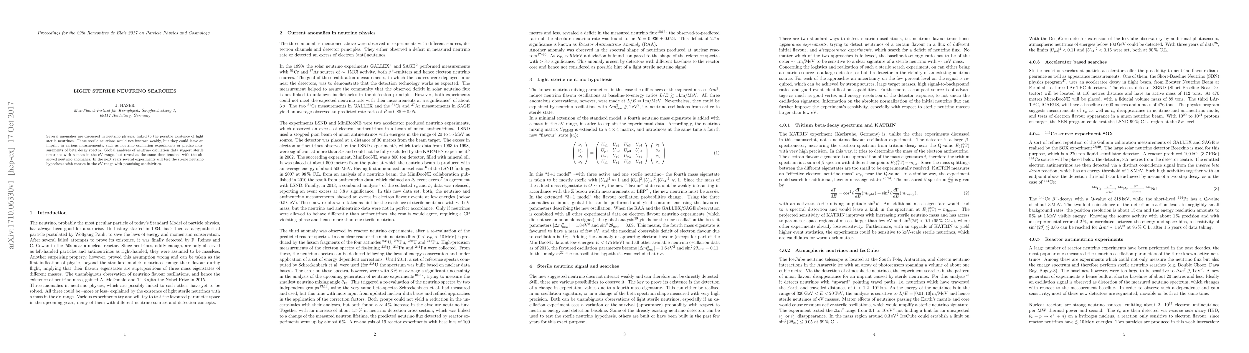 Several anomalies are discussed in neutrino physics, linked to the possible existence of light sterile neutrinos. These sterile neutrinos would not interact weakly, but they could leave an imprint in various measurements, such as neutrino oscillation experiments or precise measurements of beta decay spectra. Global analyses of neutrino oscillation data suggest sterile neutrinos with a mass in the eV range, but reveal at the same time tensions with the observed neutrino anomalies. In the next years several experiments will test the sterile neutrino hypothesis with masses in the eV range with promising sensitivities.