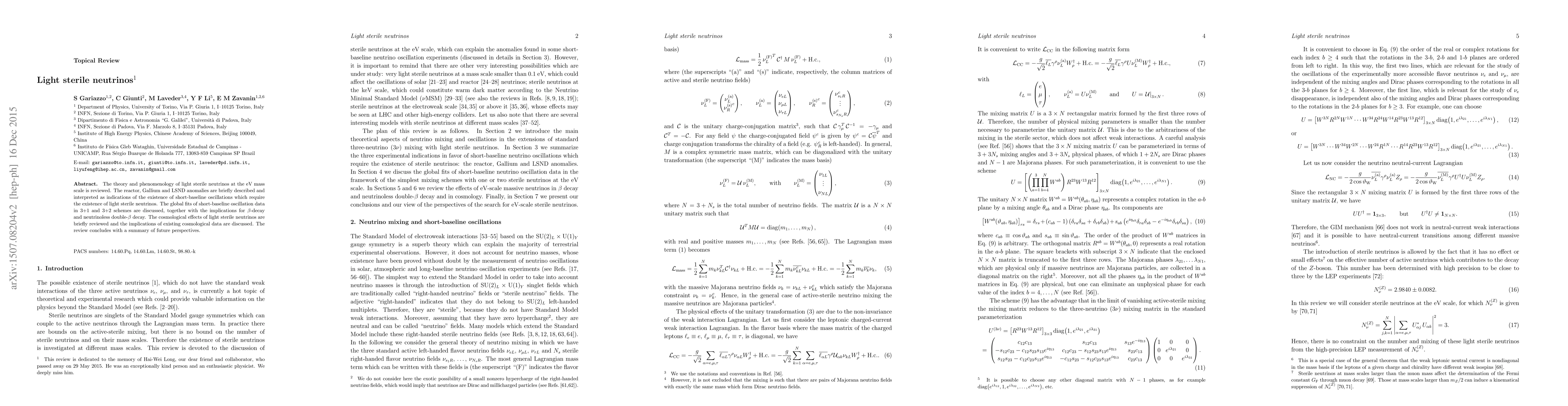 This paper reviews the theory and phenomenology of light sterile neutrinos, interpreting anomalies in reactor, Gallium, and LSND experiments as evidence for their existence in short-baseline oscillations. It discusses global fits and implications for beta-decay and neutrinoless double-beta decay, alongside cosmological effects and future research perspectives.