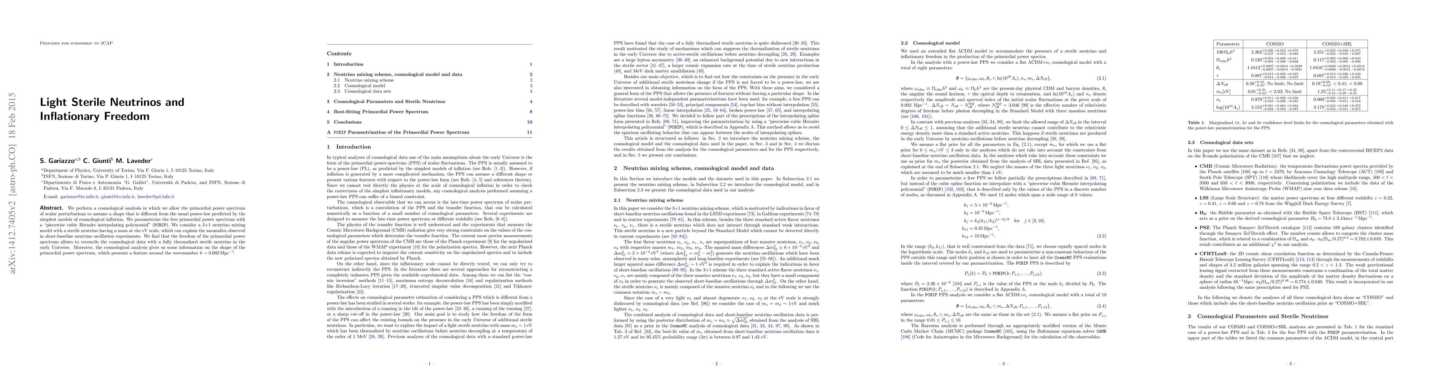 We perform a cosmological analysis in which we allow the primordial power spectrum of scalar perturbations to assume a shape that is different from the usual power-law predicted by the simplest models of cosmological inflation. We parameterize the free primordial power spectrum with a "piecewise cubic Hermite interpolating polynomial" (PCHIP). We consider a 3+1 neutrino mixing model with a sterile neutrino having a mass at the eV scale, which can explain the anomalies observed in short-baseline neutrino oscillation experiments. We find that the freedom of the primordial power spectrum allows to reconcile the cosmological data with a fully thermalized sterile neutrino in the early Universe. Moreover, the cosmological analysis gives us some information on the shape of the primordial power spectrum, which presents a feature around the wavenumber $k=0.002\,\text{Mpc}^{-1}$.