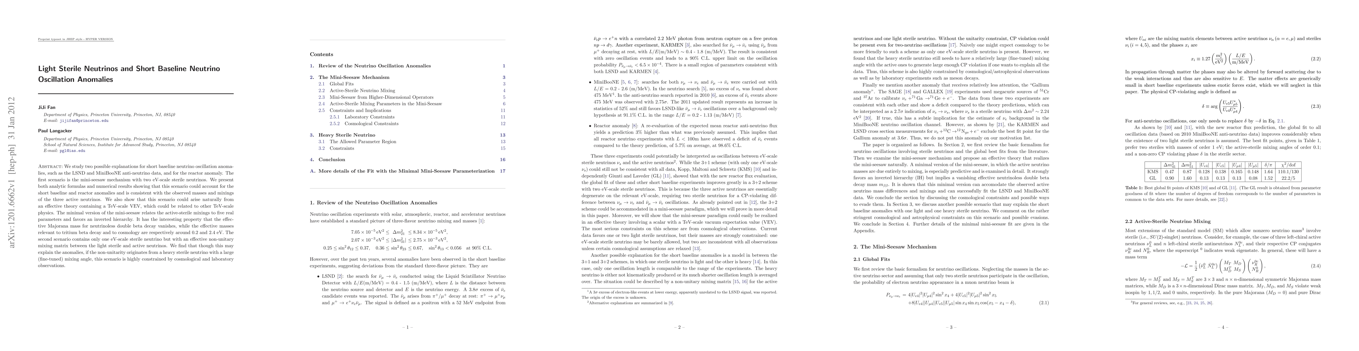 This paper explores two explanations for short baseline neutrino oscillation anomalies, focusing on the mini-seesaw mechanism with two eV-scale sterile neutrinos and a single eV-scale sterile neutrino with non-unitary mixing. Both scenarios potentially account for the observed anomalies and are consistent with active neutrino masses and mixings.