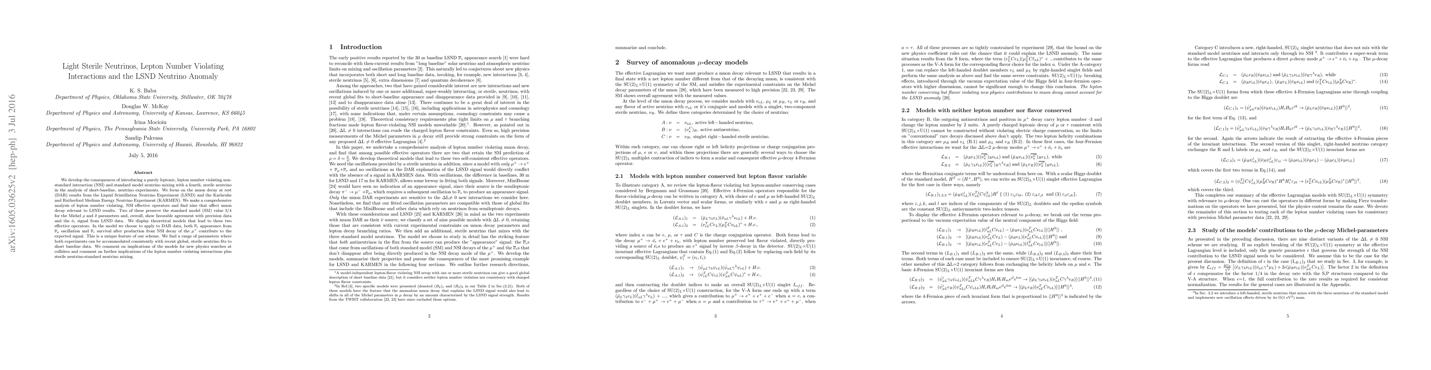 This paper explores the implications of introducing a lepton number violating interaction alongside standard model neutrino mixing with a sterile neutrino, focusing on the LSND anomaly. It identifies nine effective operators that could explain the LSND and KARMEN results, finding two that maintain agreement with precision data and suggesting a unique contribution from both muon decay and neutrino oscillation to the observed signal.