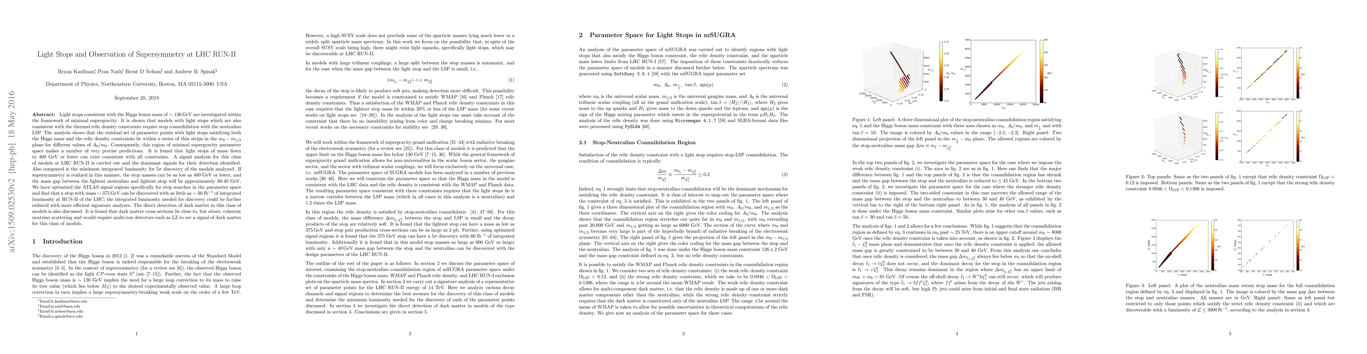 Researchers investigate light stops in supersymmetry models, finding that they can exist with masses as low as 400 GeV, making predictions for LHC RUN-II detection and implications for dark matter detection.